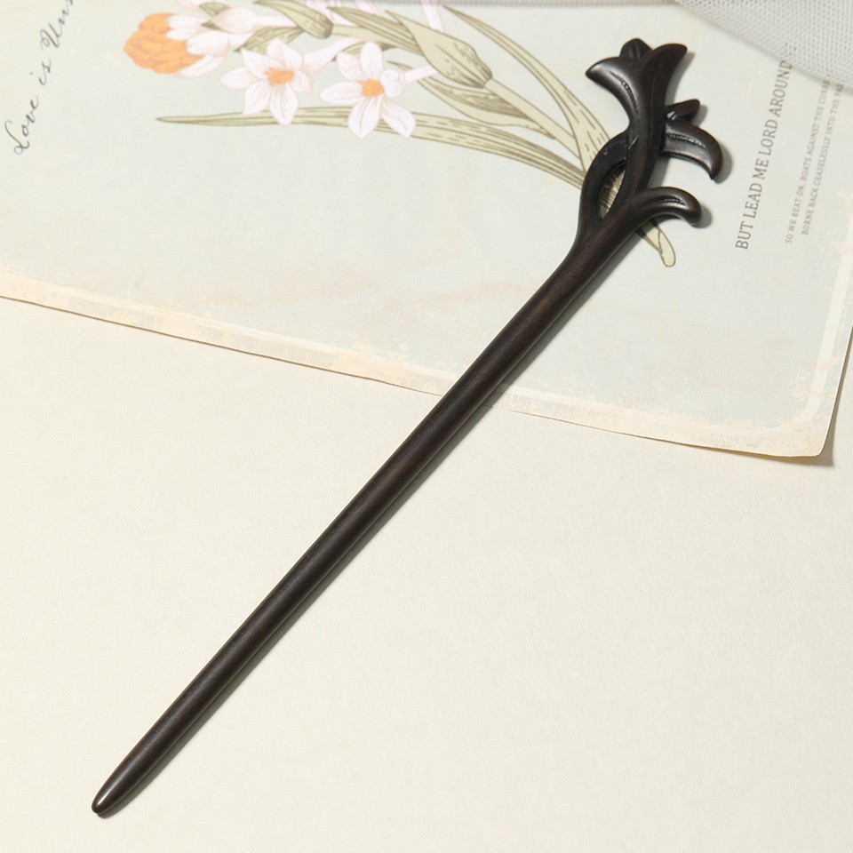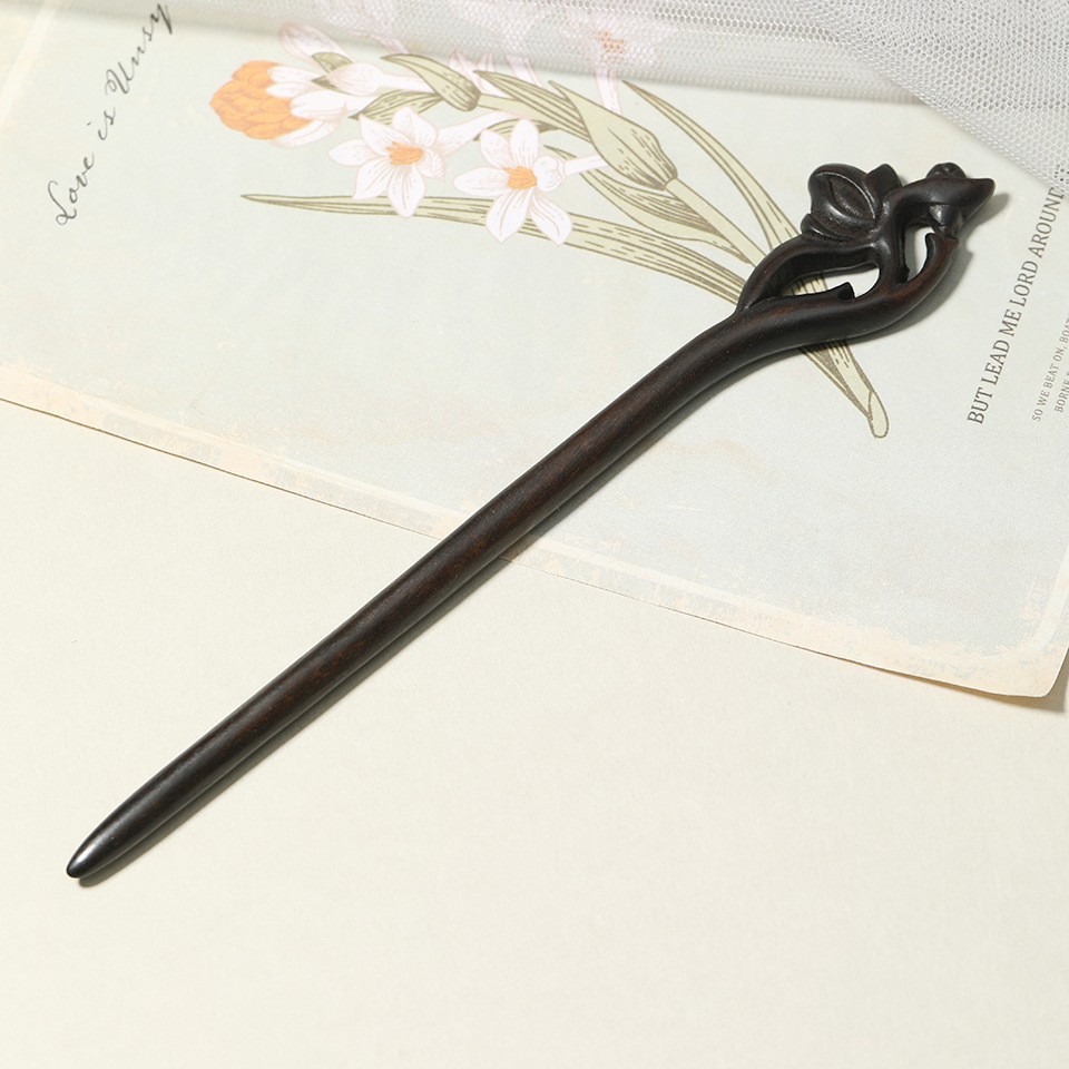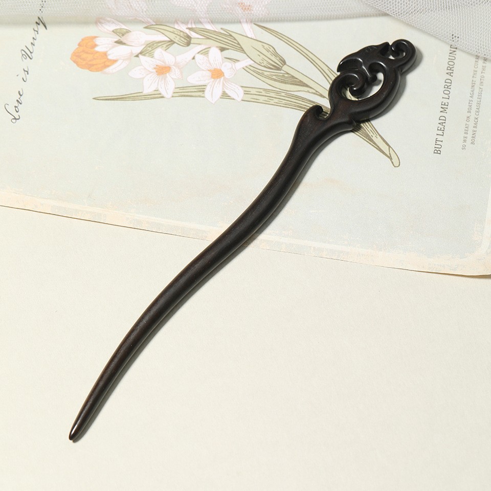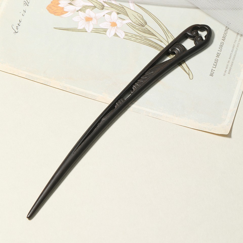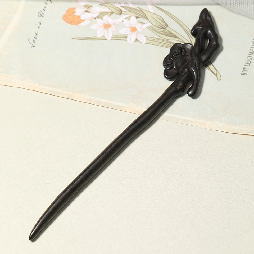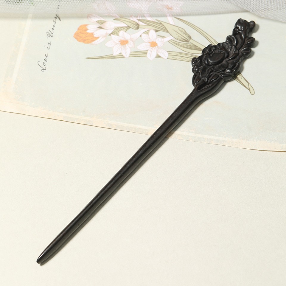 古風黒檀木簪、彫刻木製ヘアピン、髪飾り、木簪装飾品、白檀彫刻芸術