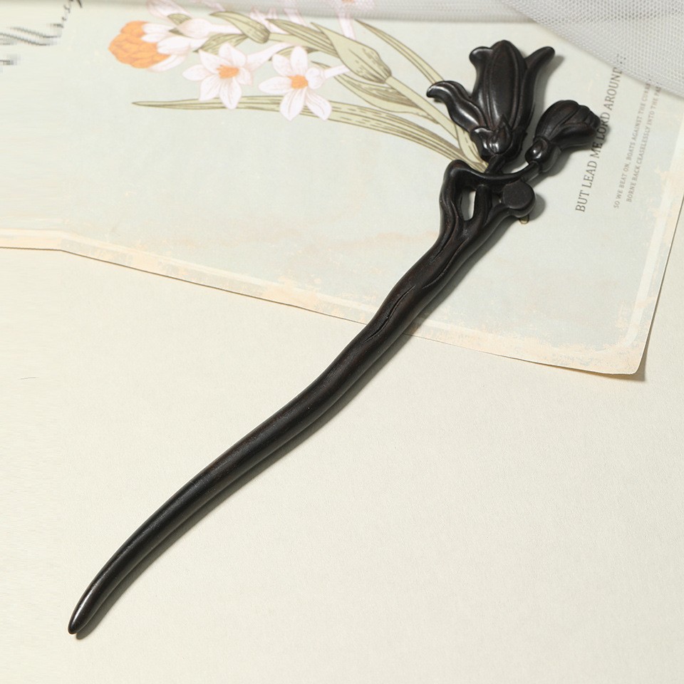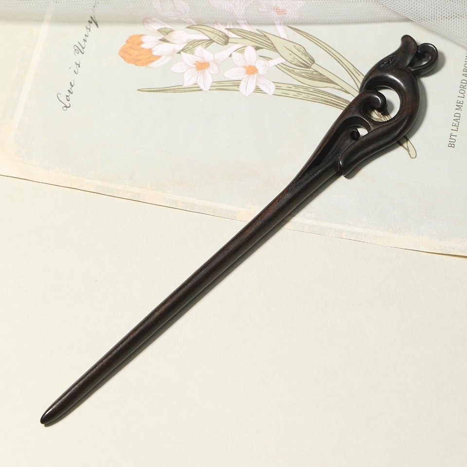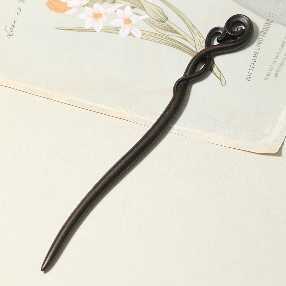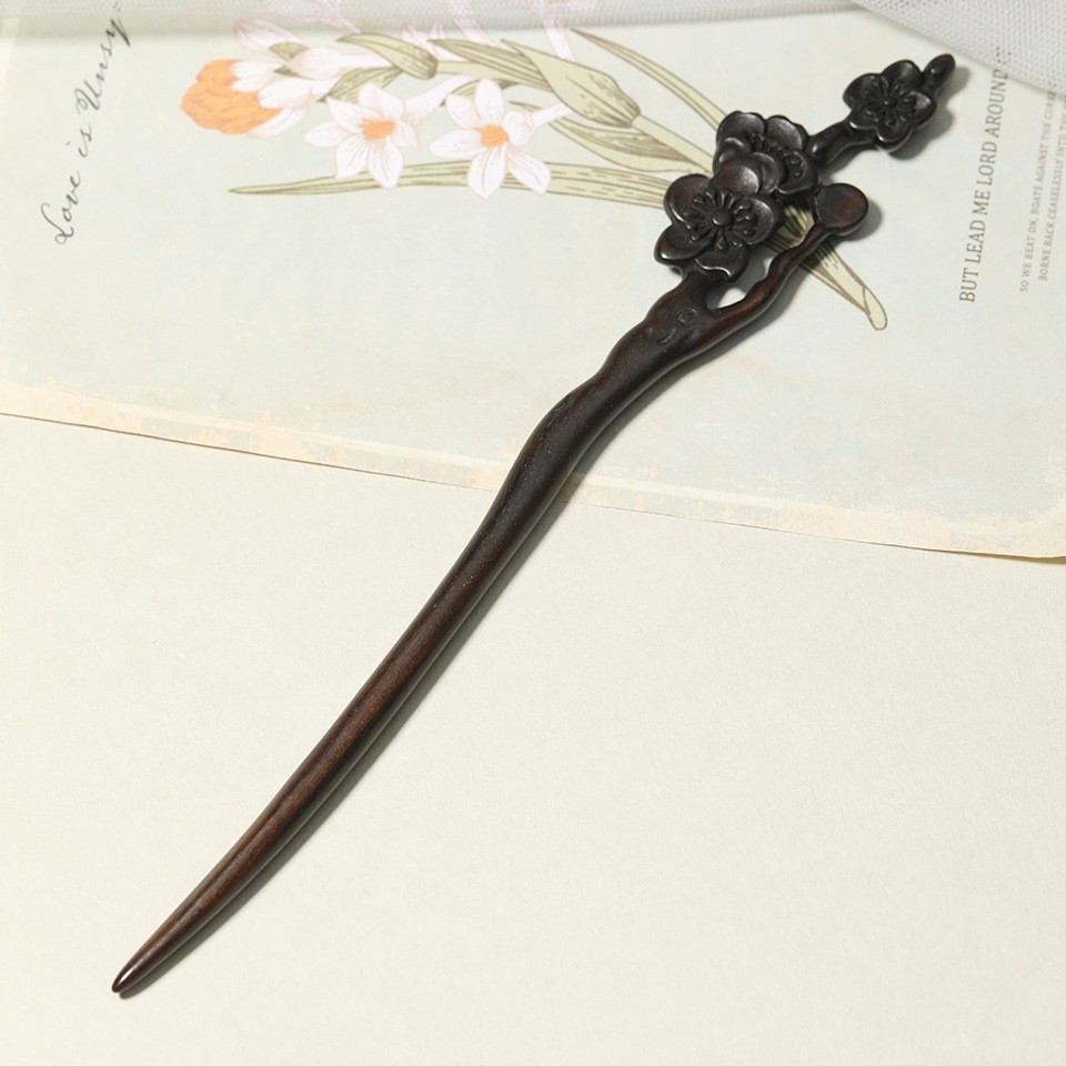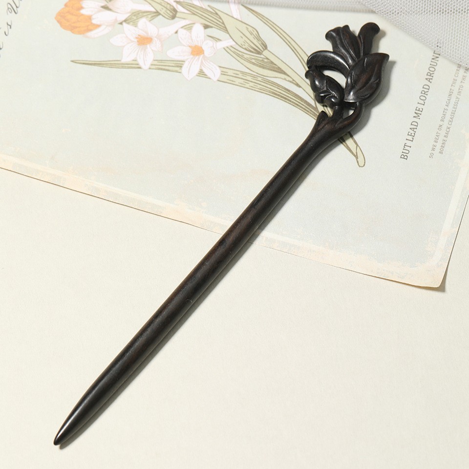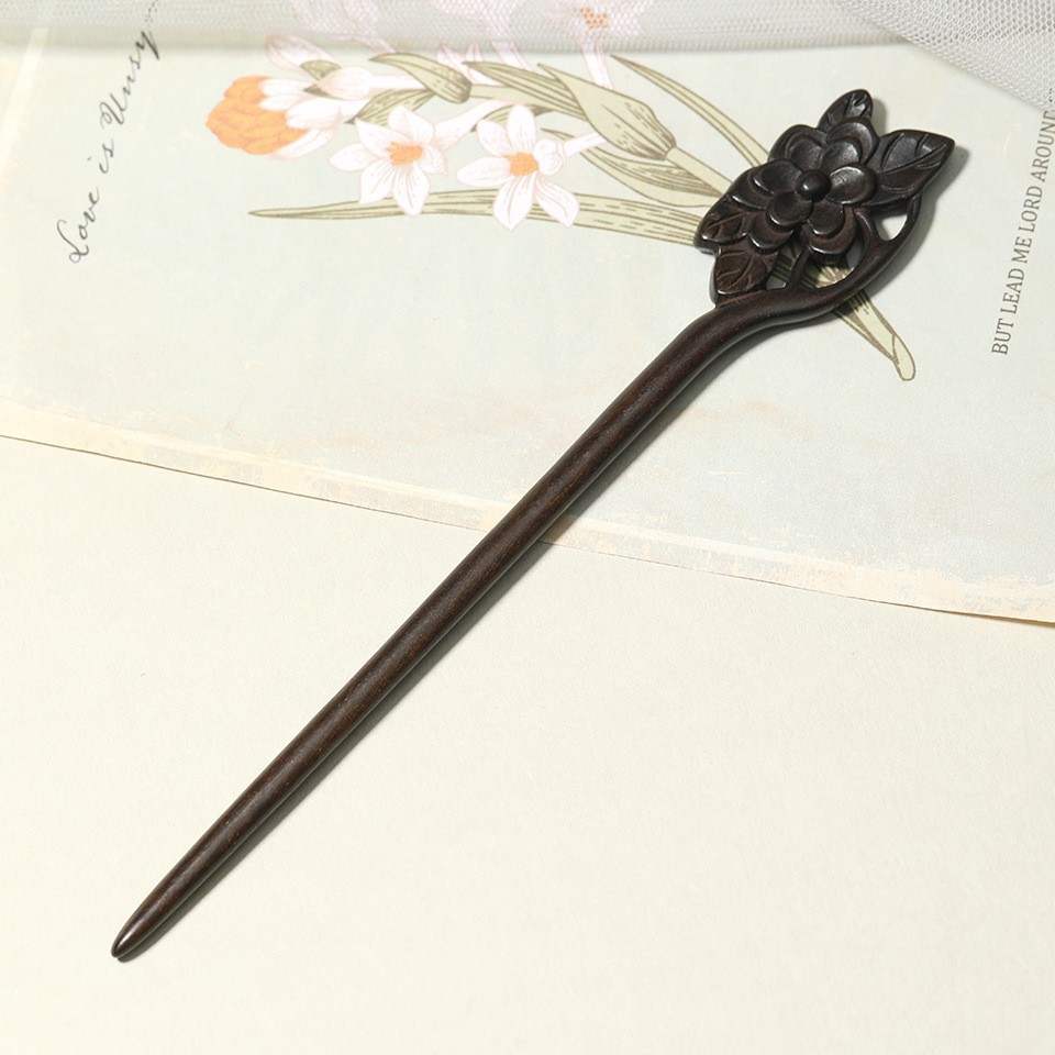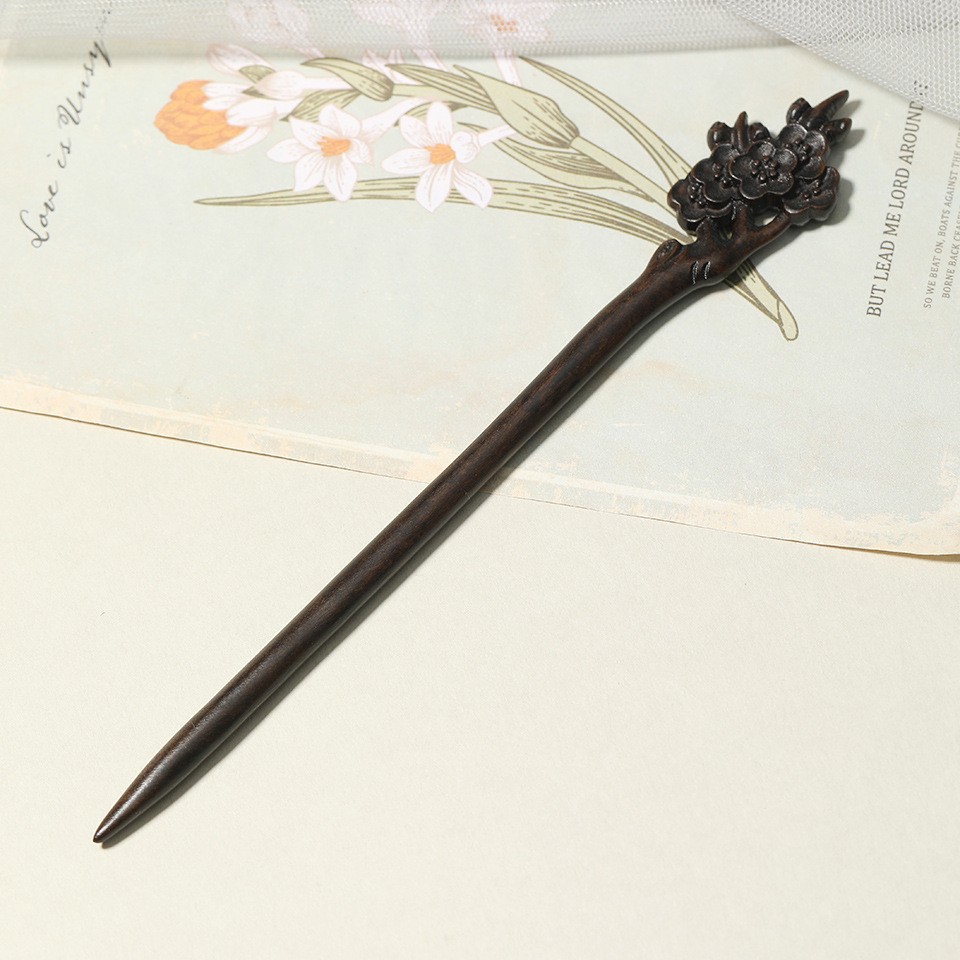 古風黒檀木簪、彫刻木製ヘアピン、髪飾り、木簪装飾品、白檀彫刻芸術