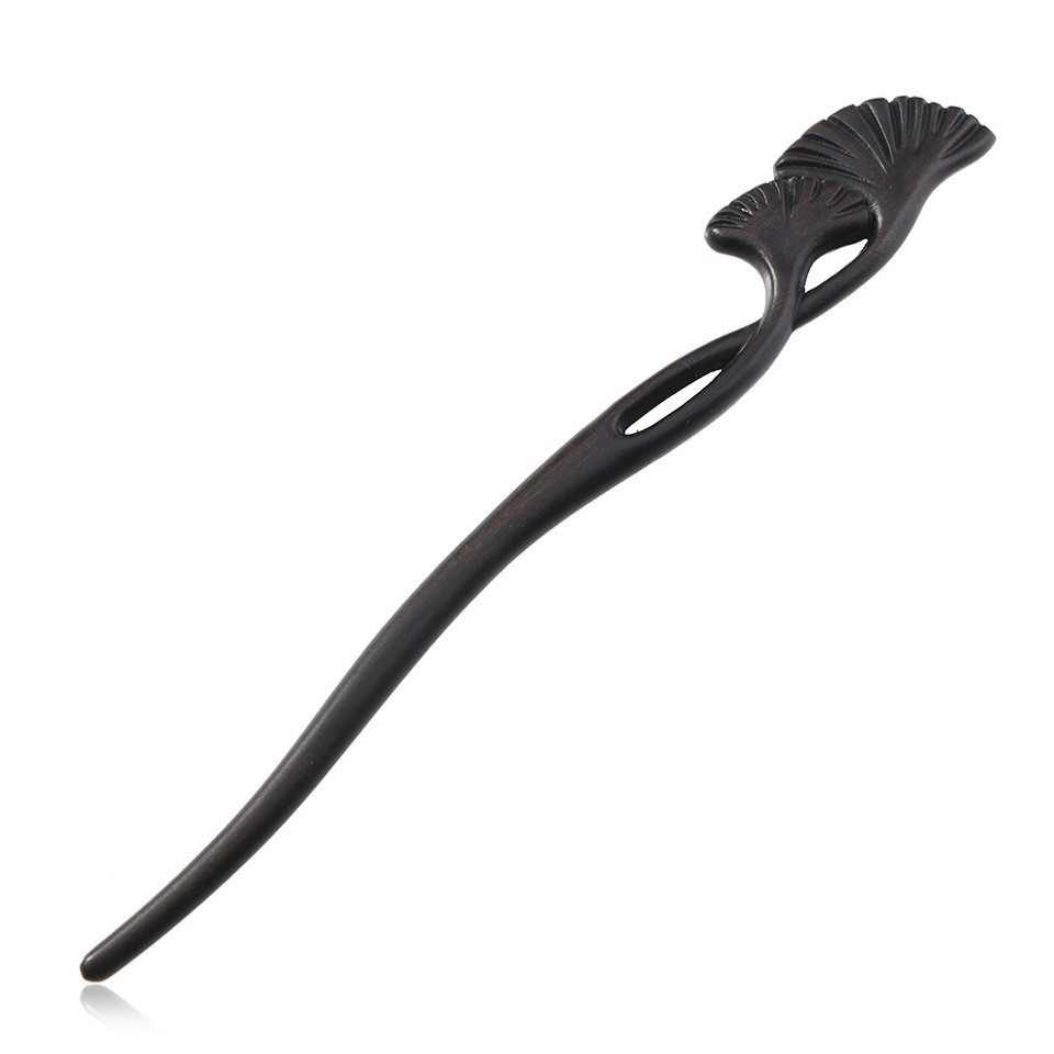 時代劇古風黒木檀ヘアピンシンプルな彫刻木製のヘアピン