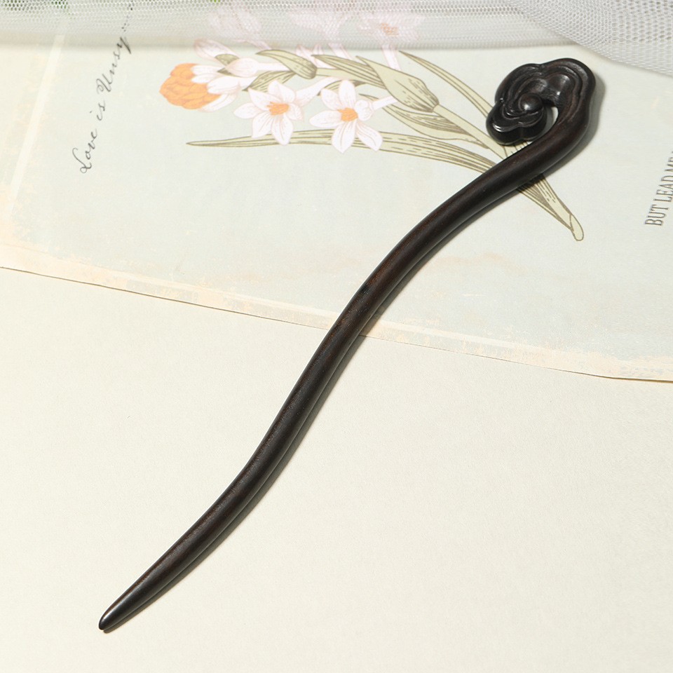 中国式日常通勤高級感黒檀精雕髪かんざし国風新中国式檀木木盤髪木かんざし飾り