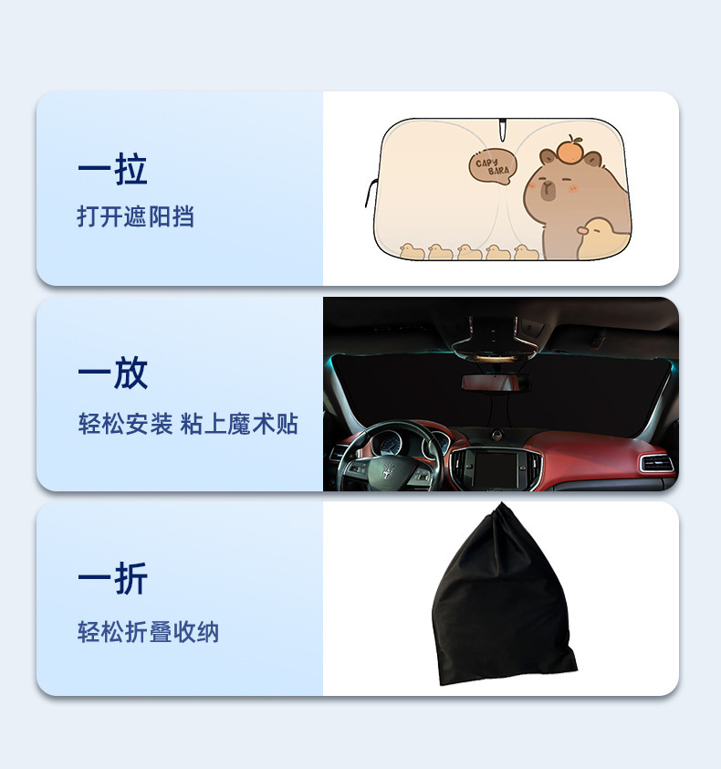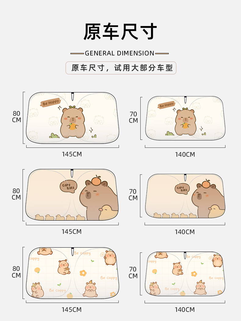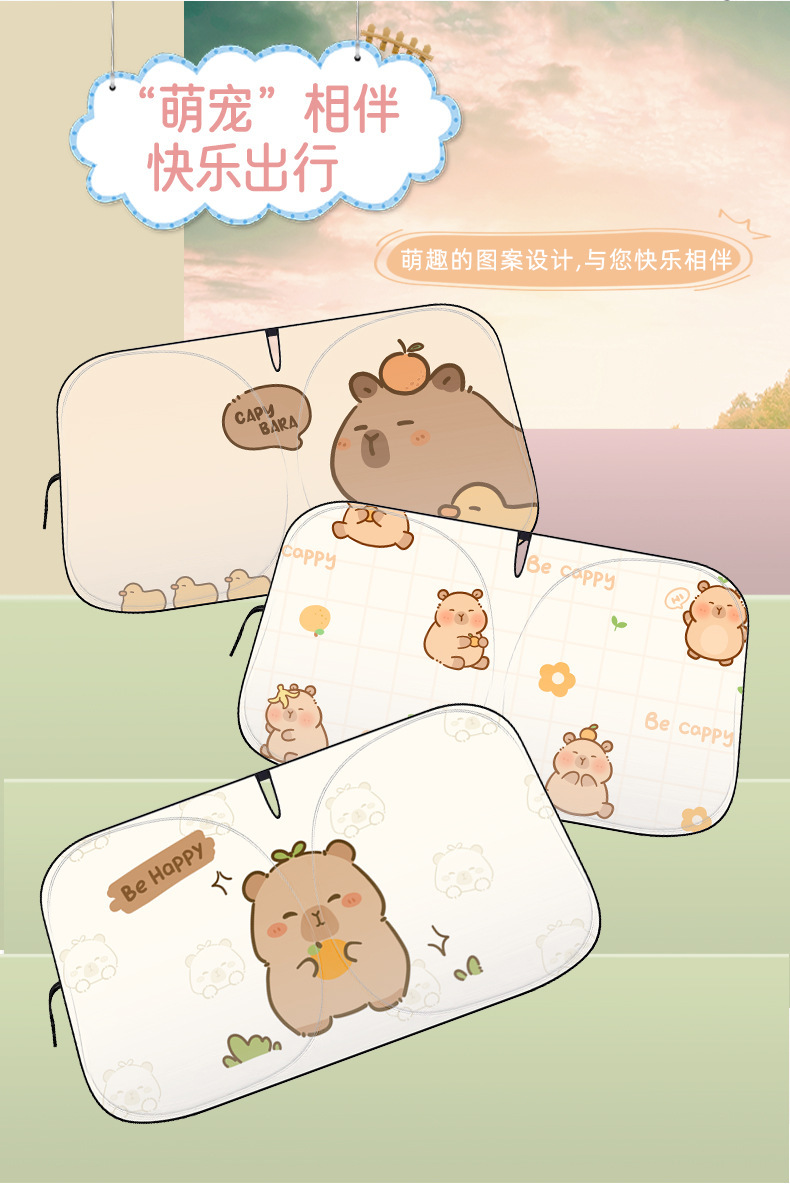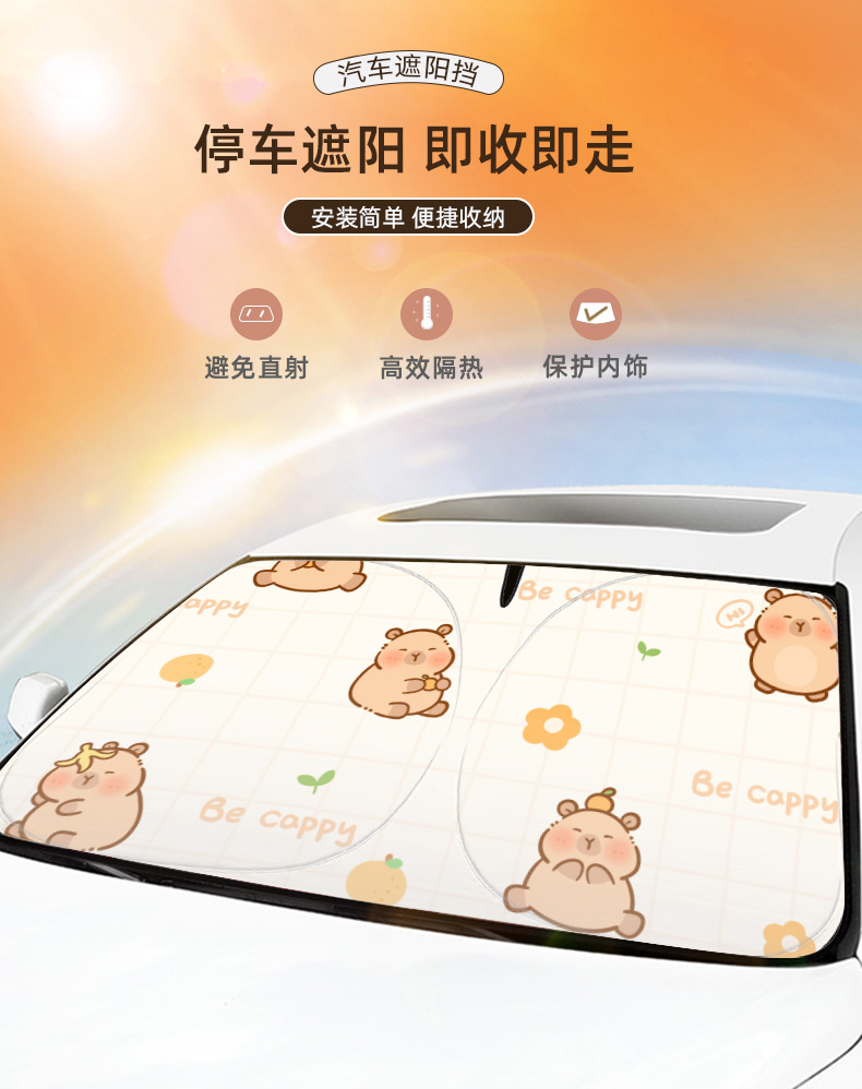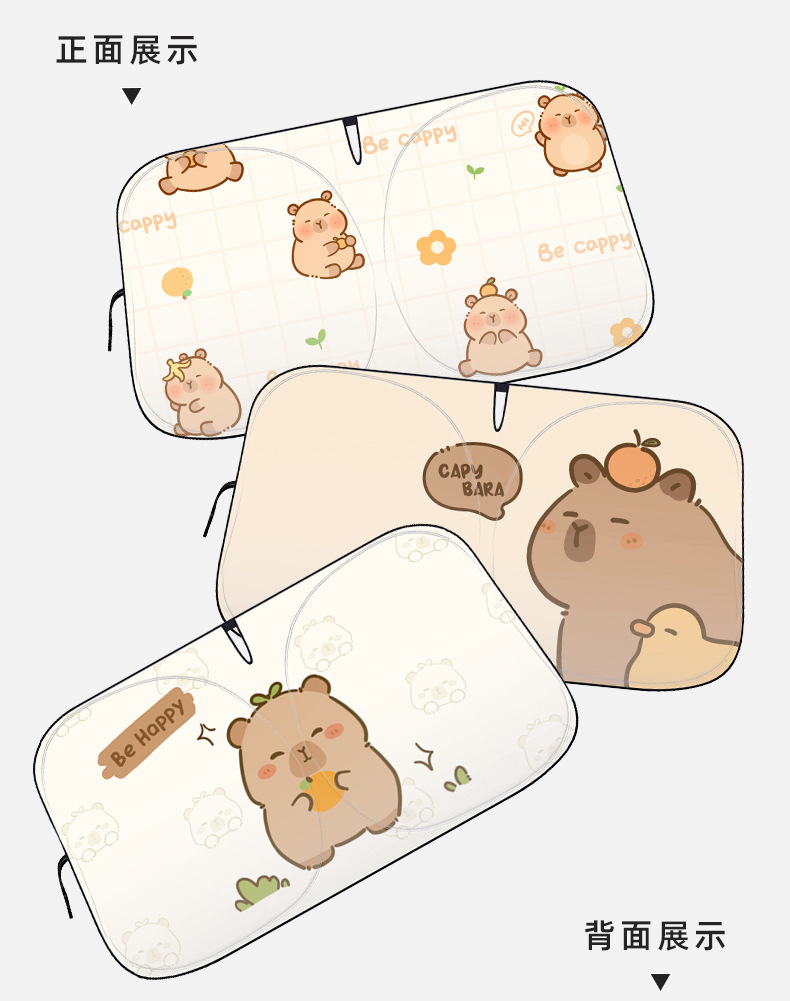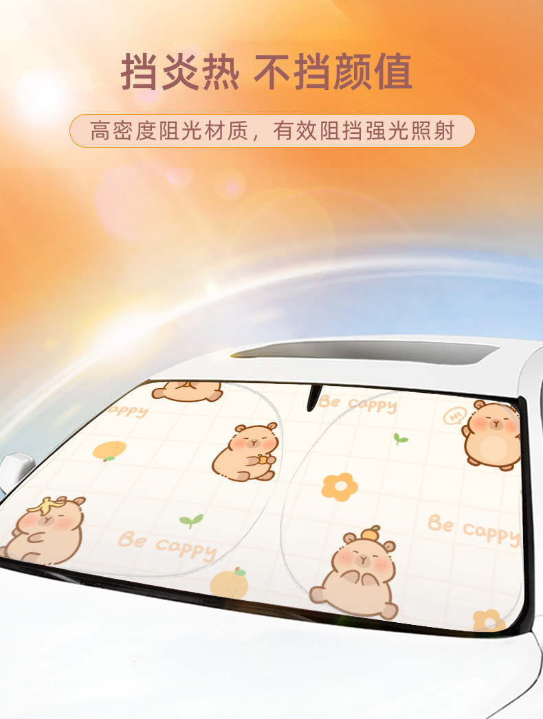 Long Grass Dolphin 車用ダブルサークルサンシェード、日焼け防止と断熱車用サンバイザー、カピバラ車用サンシェードフロント