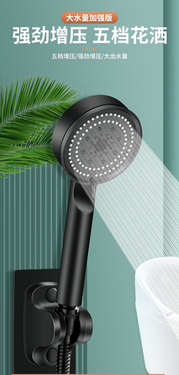 黒五段止水多機能浴室シャワーシャワー黒家庭用大出水量浴室温水増圧