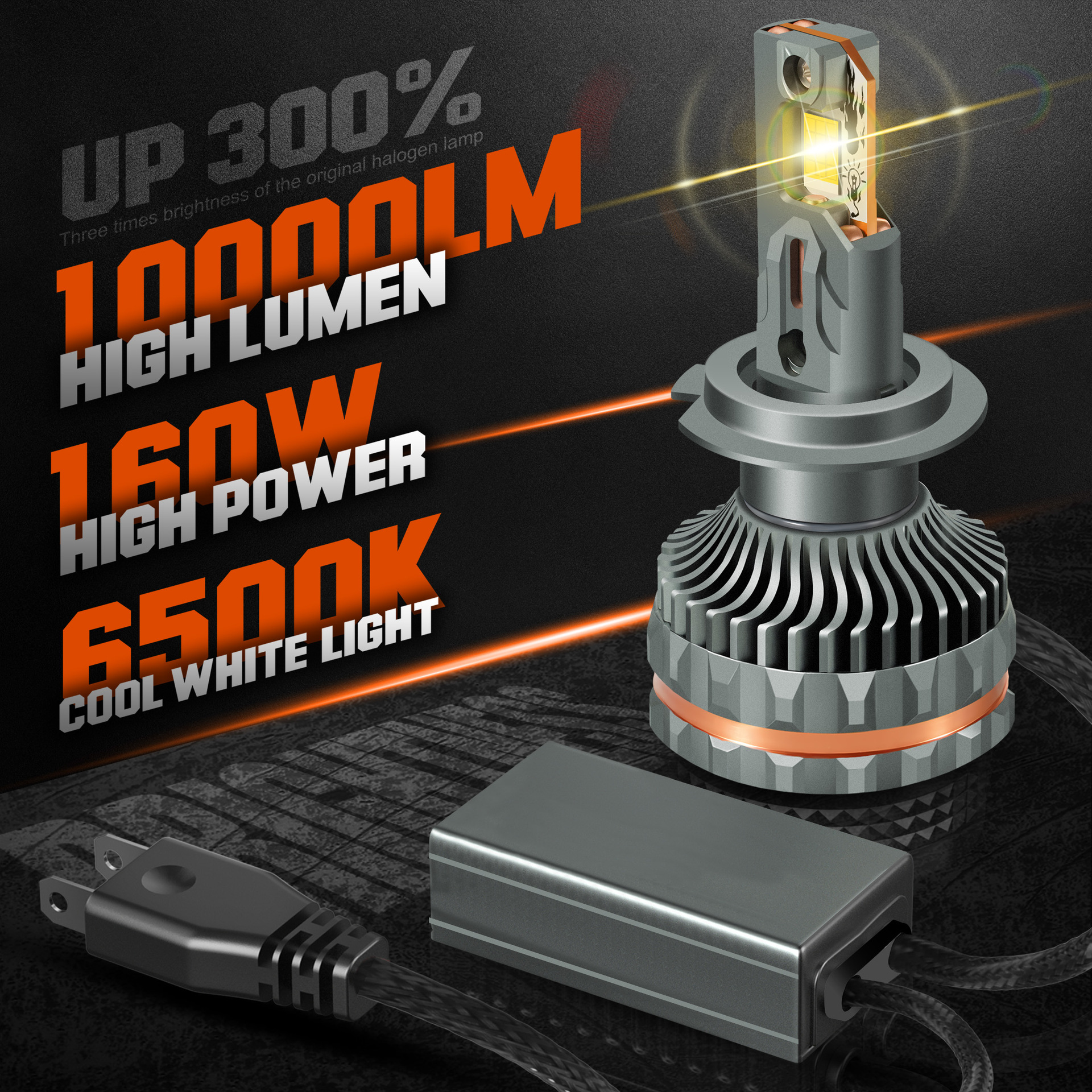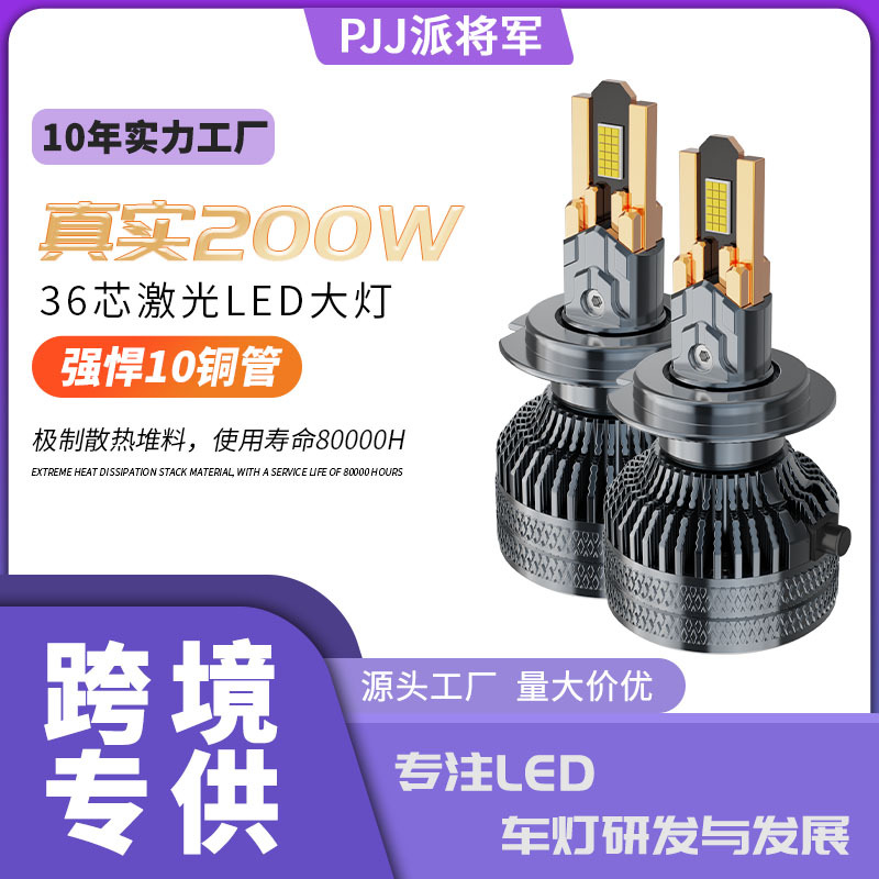 升级10铜管200w大功率大功率汽车led前照灯36芯H7灯泡led汽车大灯