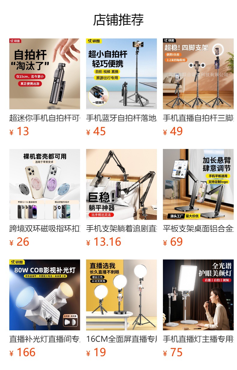 多機能伸縮携帯電話スタンド生放送美顔補光灯携帯プロジェクター着地三脚メーカー卸売り