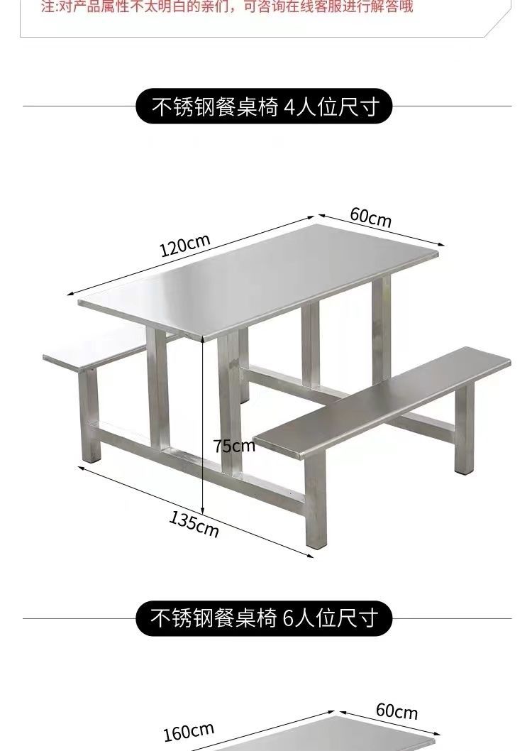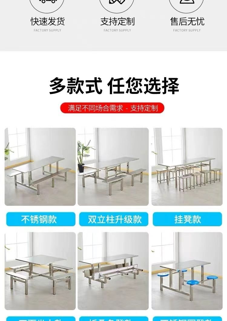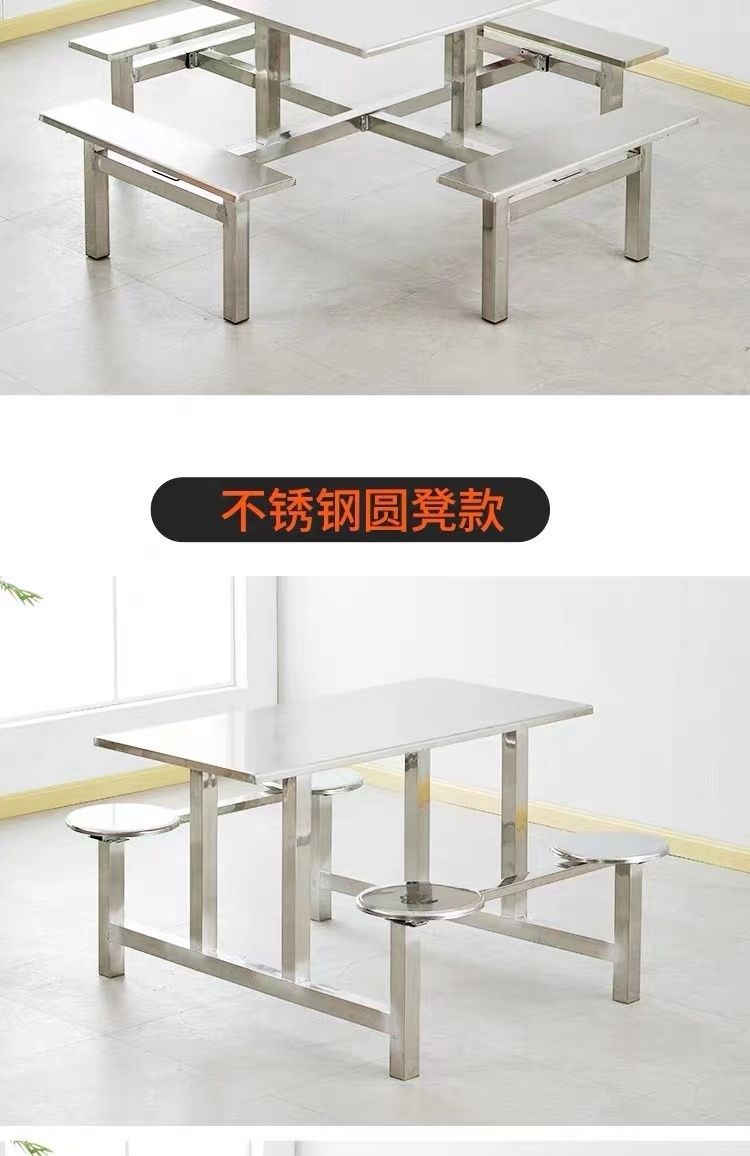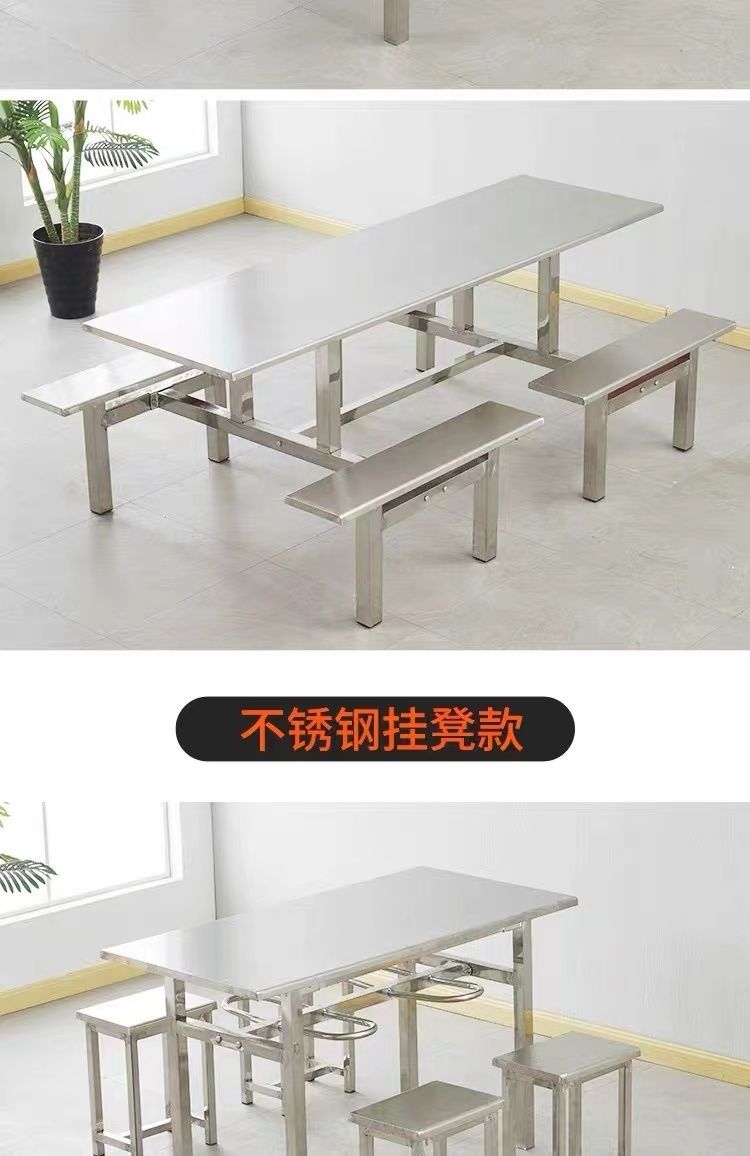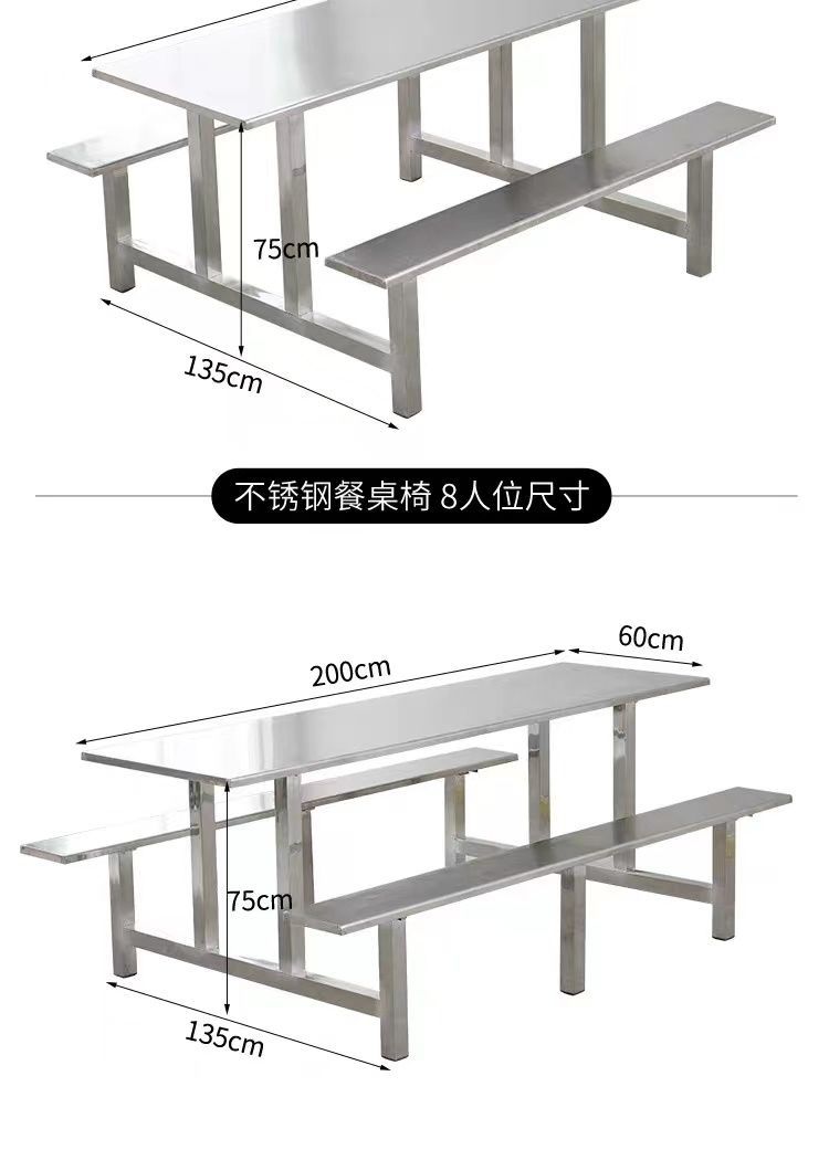食堂餐桌椅学校工厂员工快餐桌4人6人8人不锈钢连体餐桌椅厂家