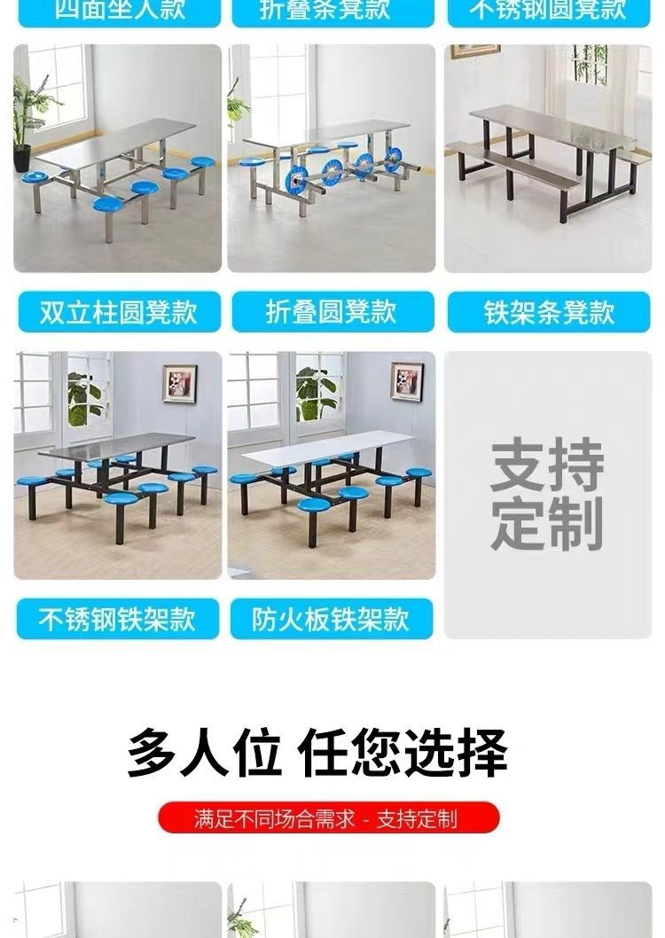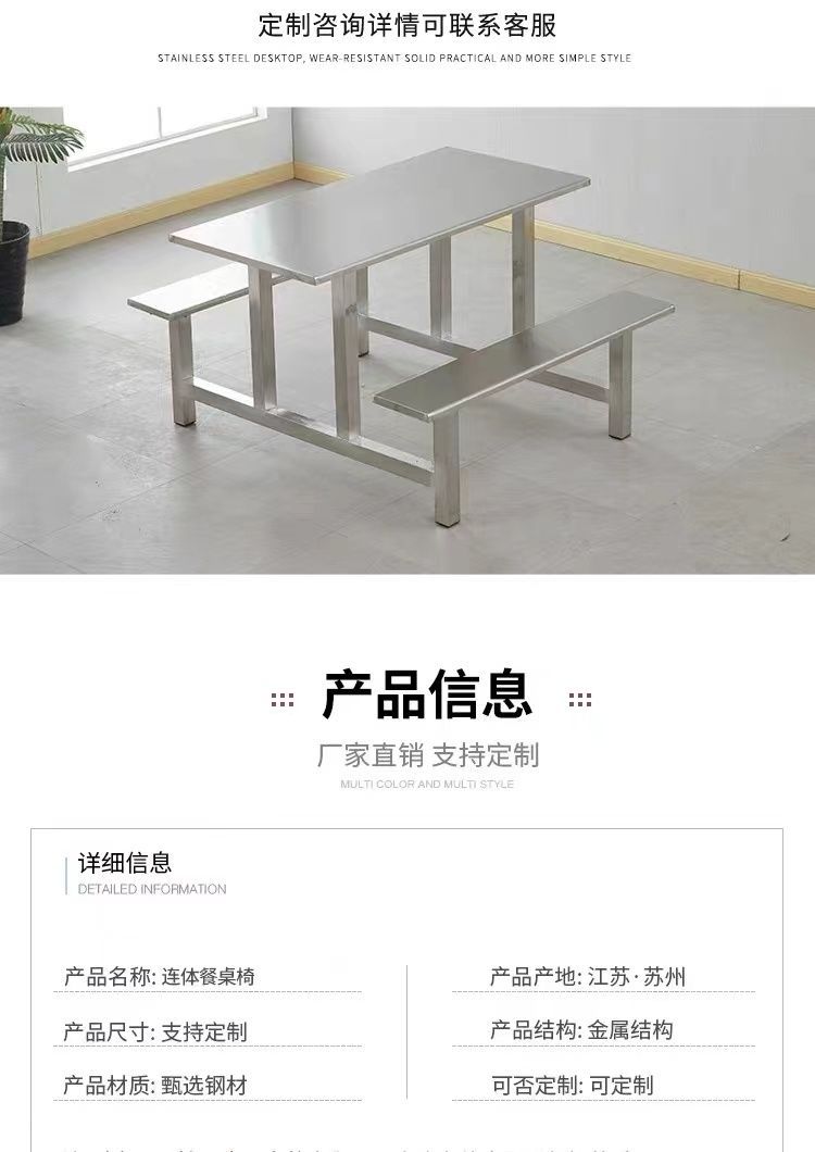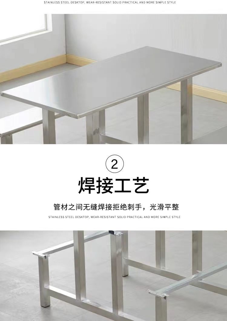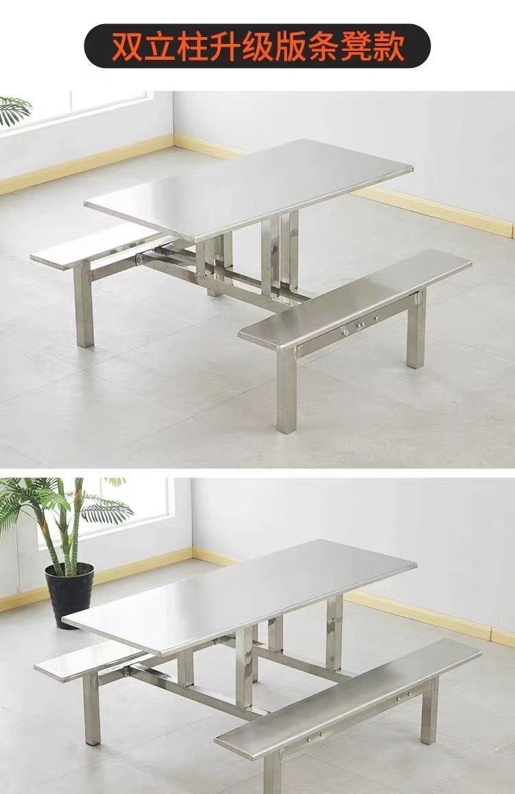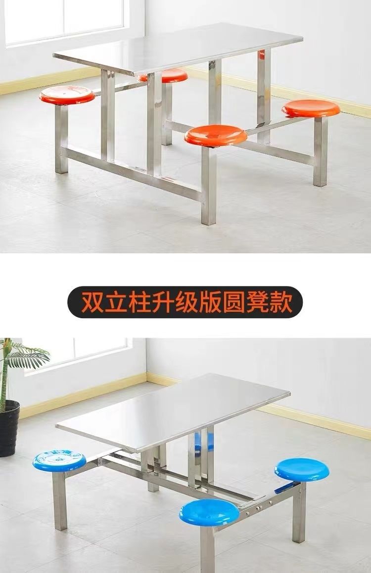 食堂餐桌椅学校工厂员工快餐桌4人6人8人不锈钢连体餐桌椅厂家