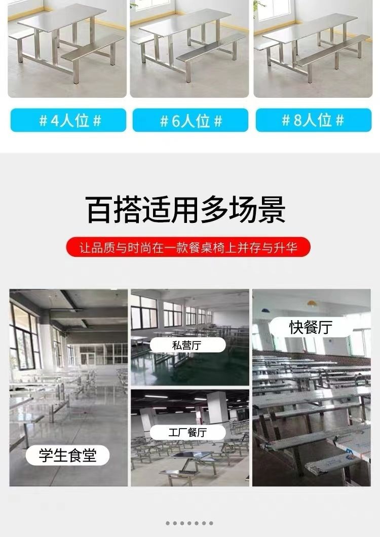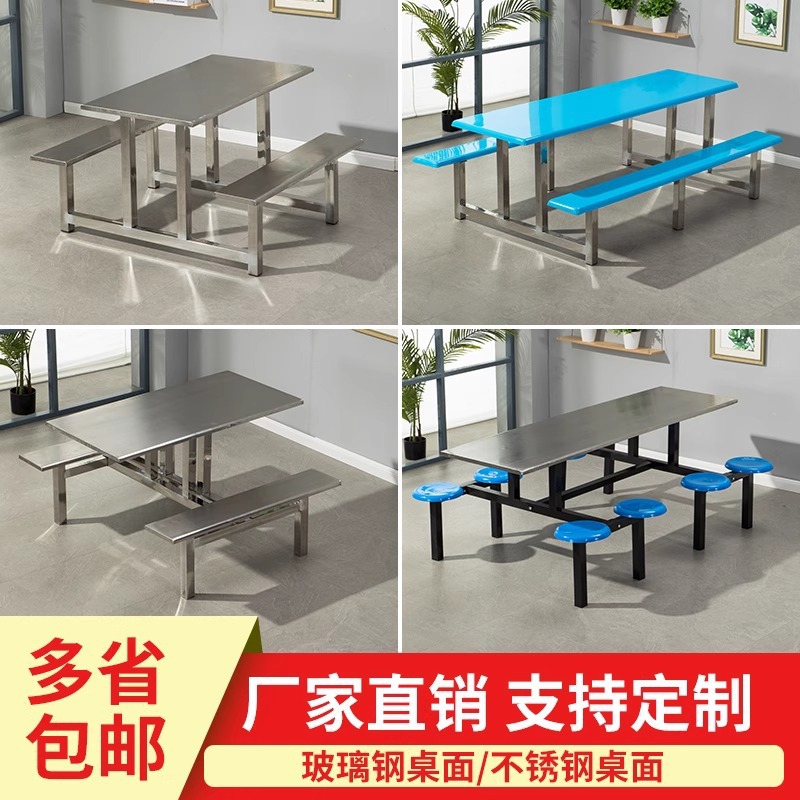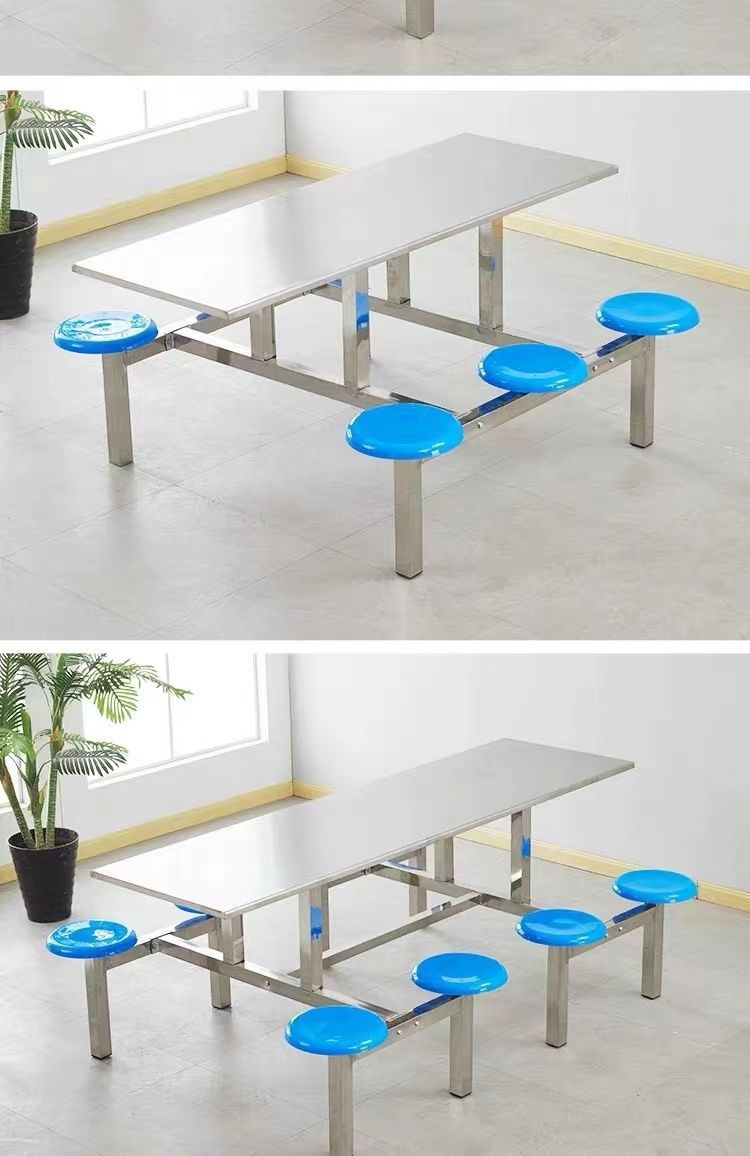 ステンレス食卓学校従業員食堂連体食卓4人6人8人従業員レストラン組み合わせテーブル椅子