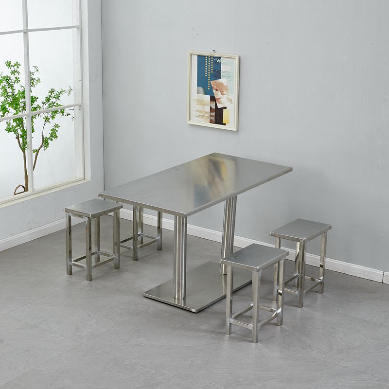腰掛けステンレスセットテーブルと椅子の組み合わせ4人6人8人分体食堂レストランの腰掛けステンレステーブル