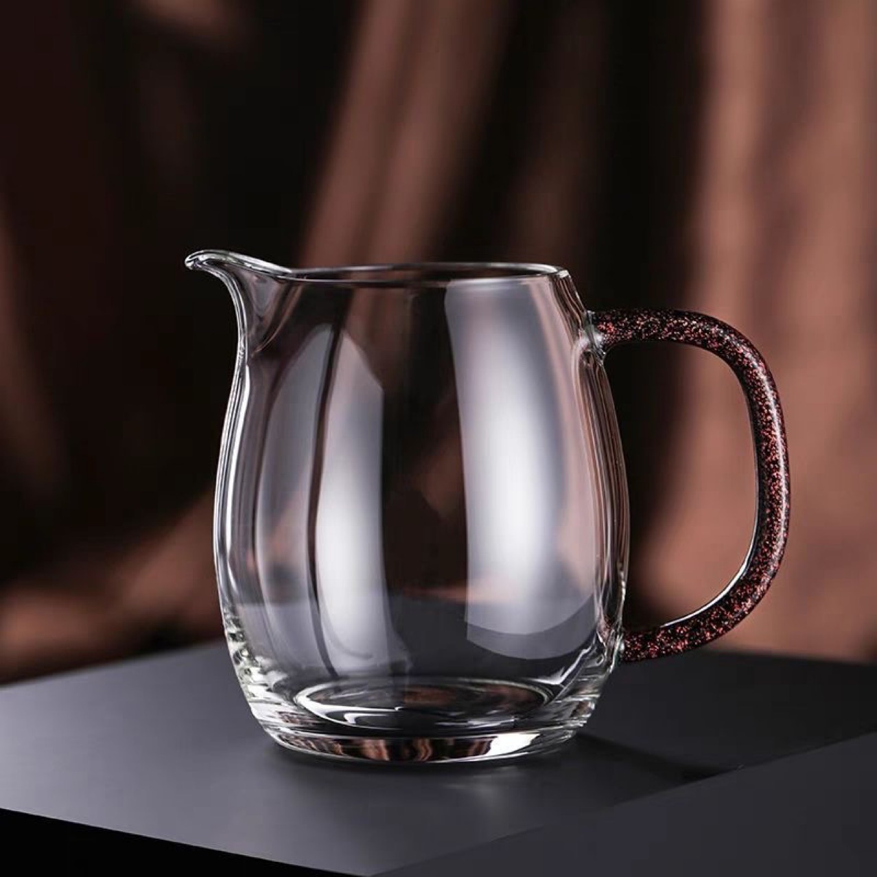 メーカー卸売 ガラス製公道杯 ペンギン・イーグルノーズ 厚みのある耐熱透明 カラフルハンドル付き 公道杯 茶海