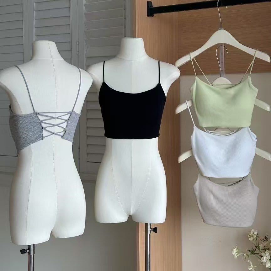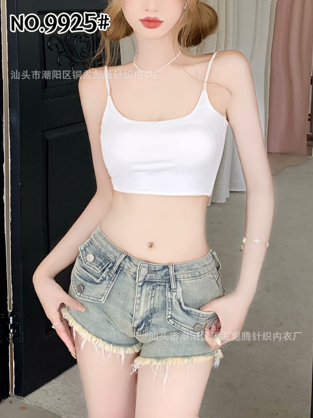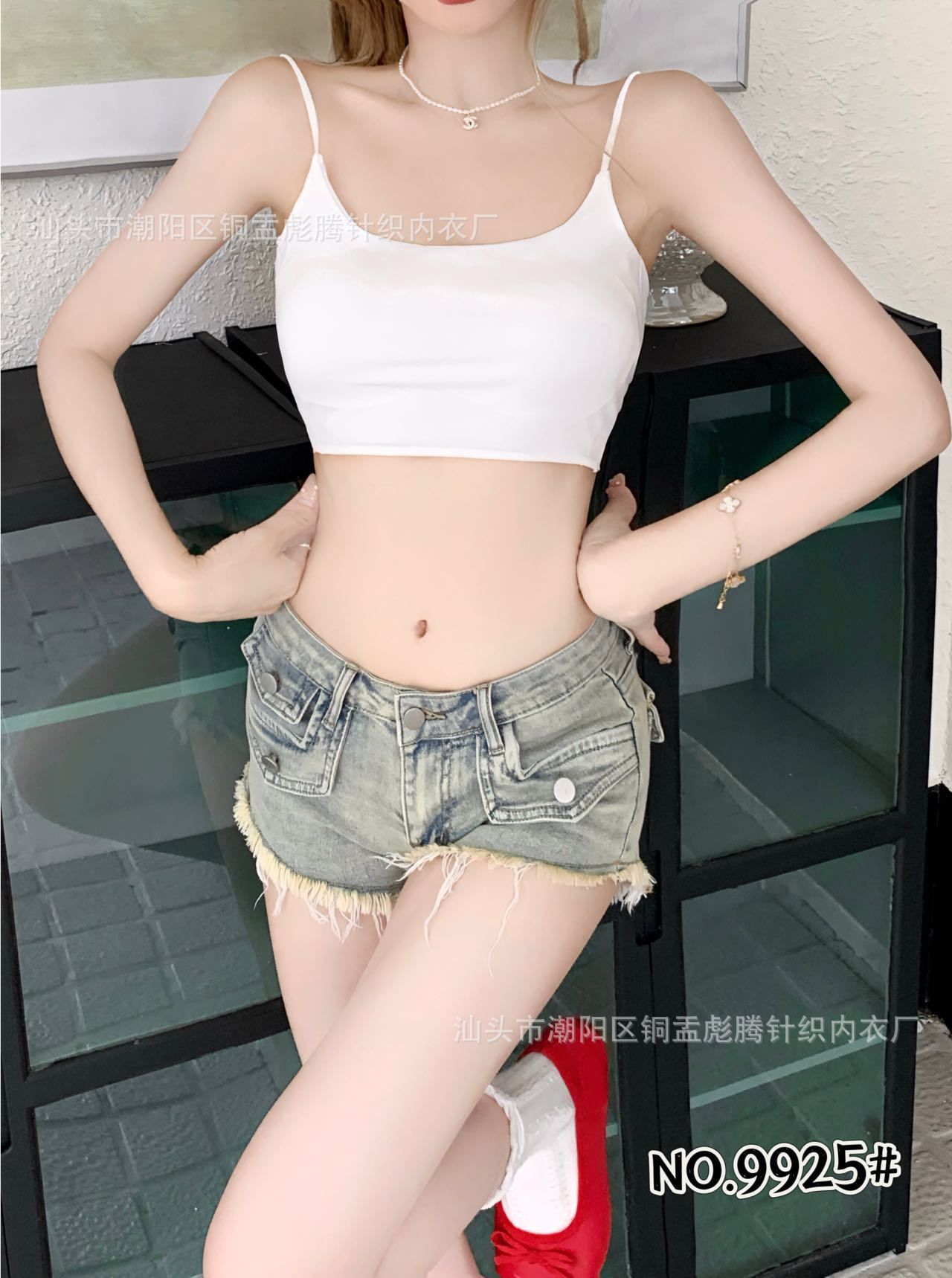 9928 # 春夏新作氷糸小ガーターは胸を巻いています。女子学生の一体式の固定胸パッドは交差しています。