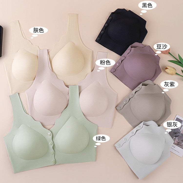 057 # 前ボタン裸感無痕美背大サイズブラジャー胸ラテックス綿全固定コースター幅肩ひも下着
