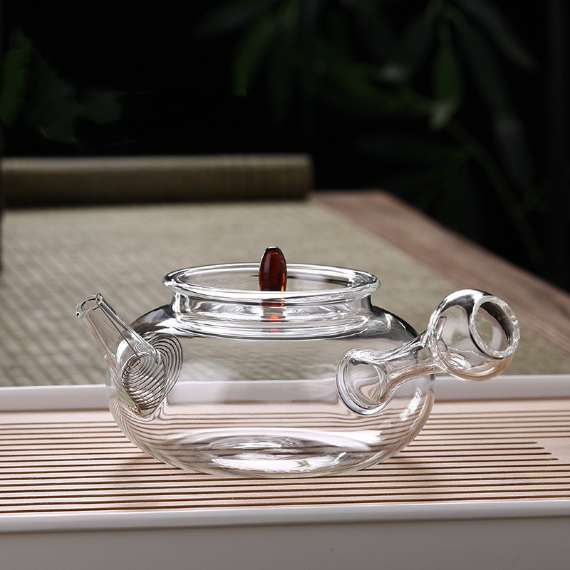 高硼珪酸ガラス製サイドハンドルティーポット、家庭用火炉用ティーポット、星空ポット、厚手ガラスティーポット、お茶作り用ティーポット、茶器