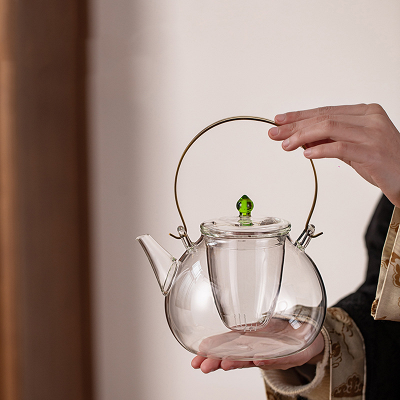 空心侧把花茶壶 高硼硅耐热功夫茶具 办公室泡茶居家用茶水分离器