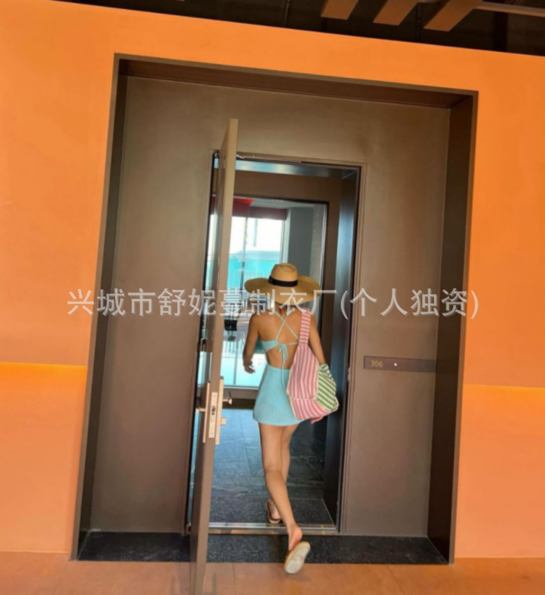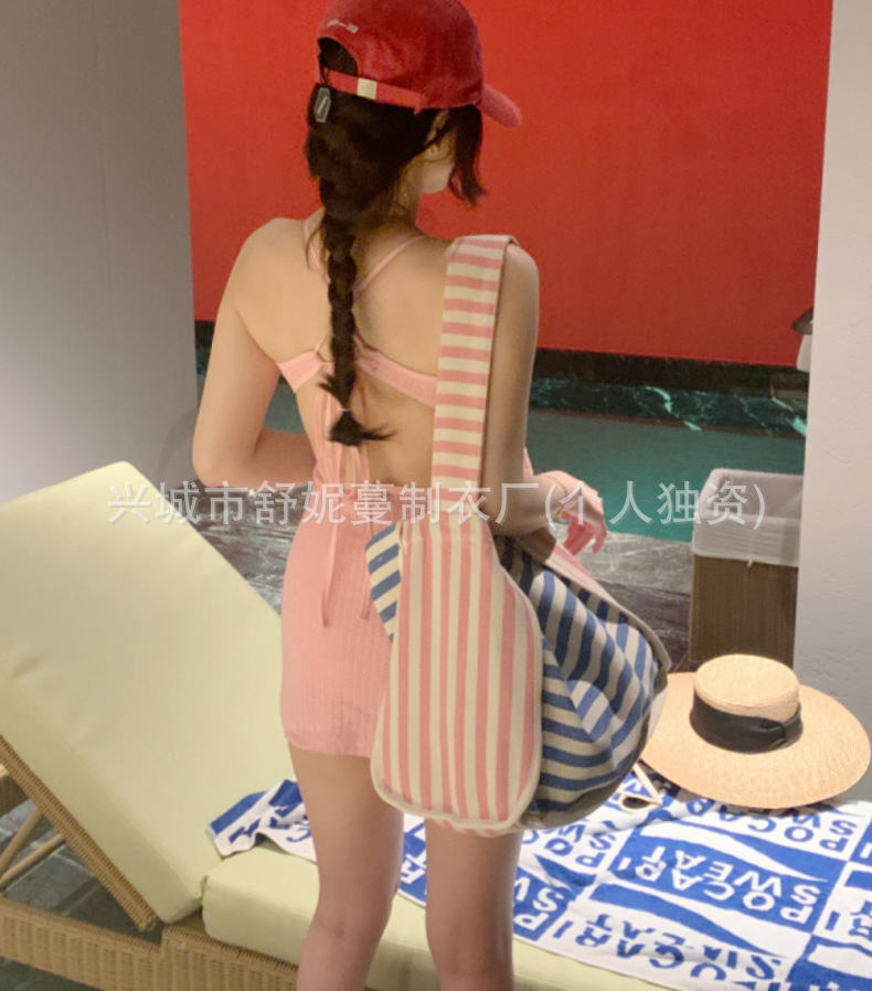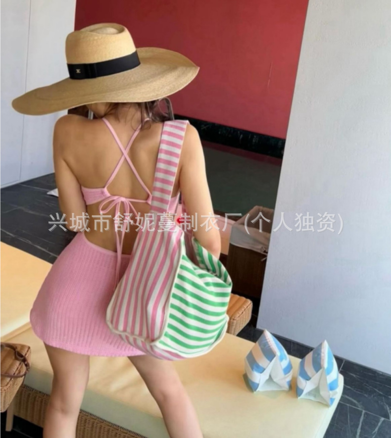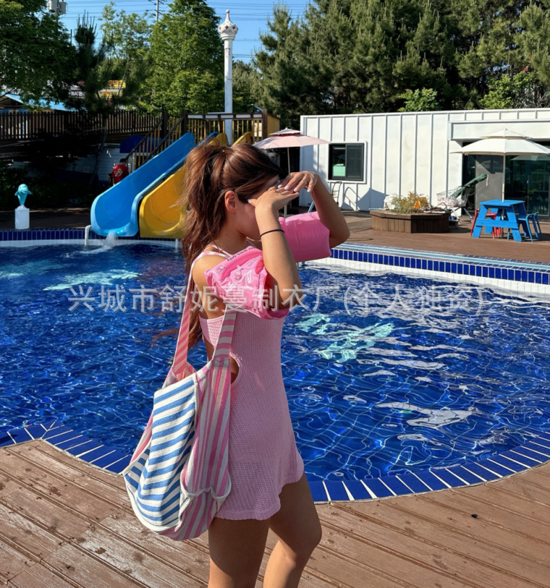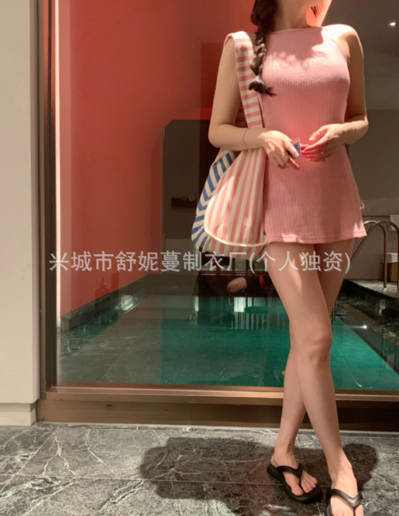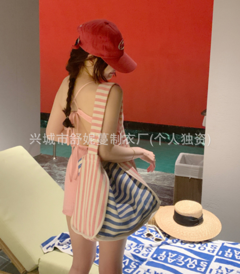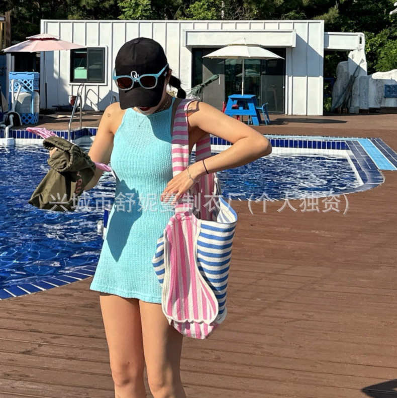 5色ニットクロスボーダー2025韓国新スタイルバックレスストラップハイウエストお腹カバー女性用コンサバワンピース水着