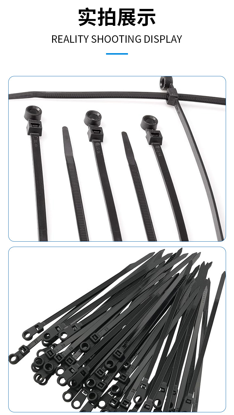 メーカー卸売固定ヘッドナイロンケーブルタイ4X150/5X200丸穴セルフロック式超耐寒ネジ穴ケーブルタイ