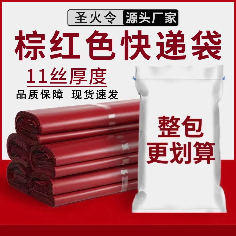 棕红色11丝快递打包袋子批发整包大号小号中号加厚防水物流包装袋