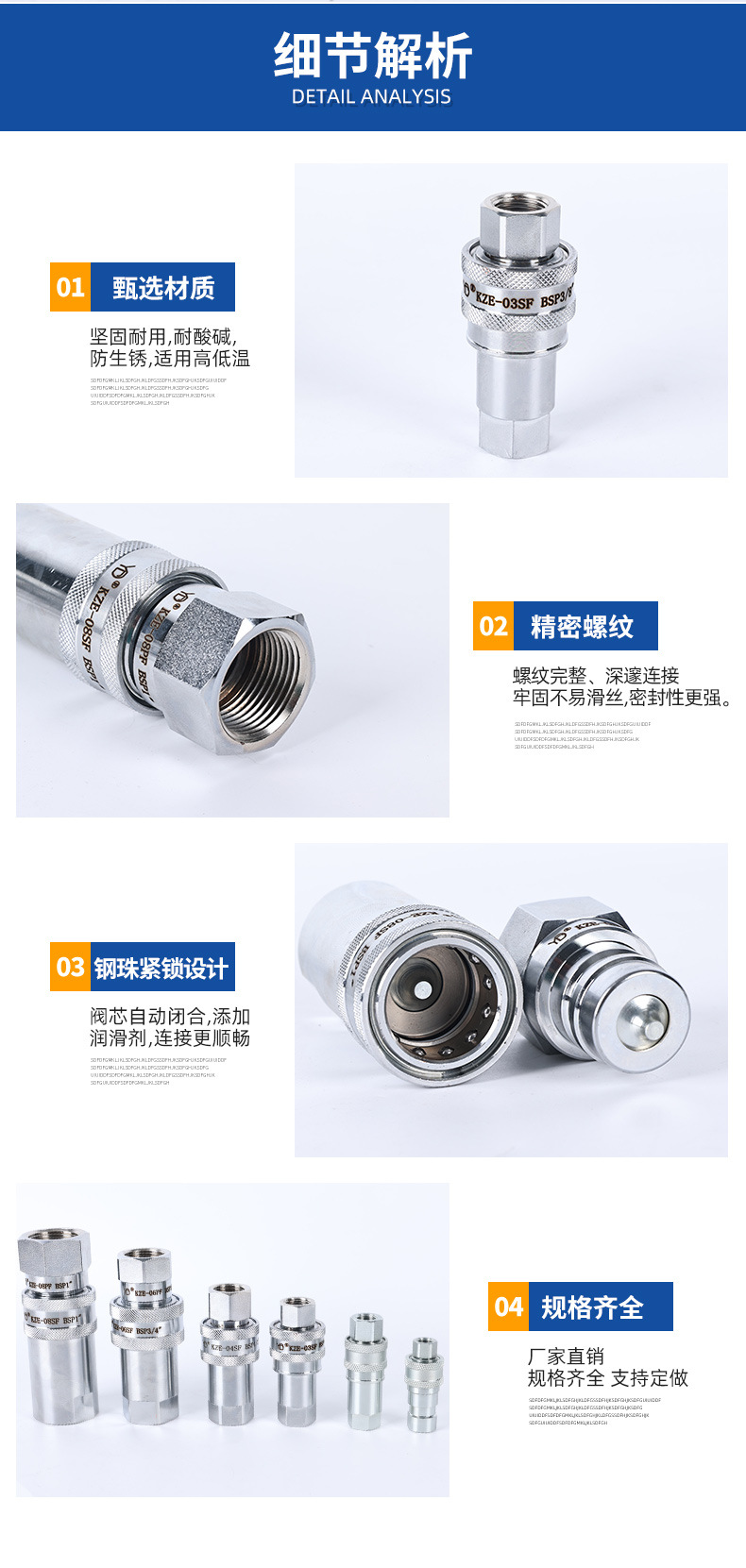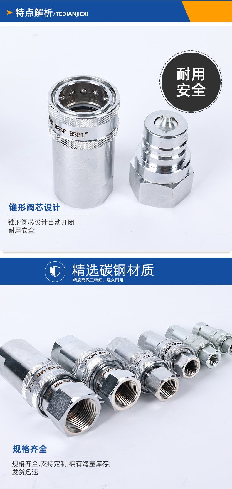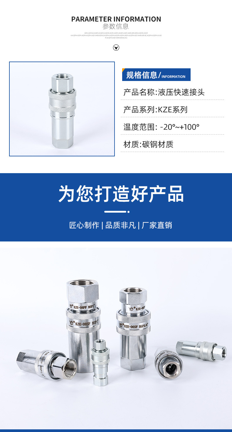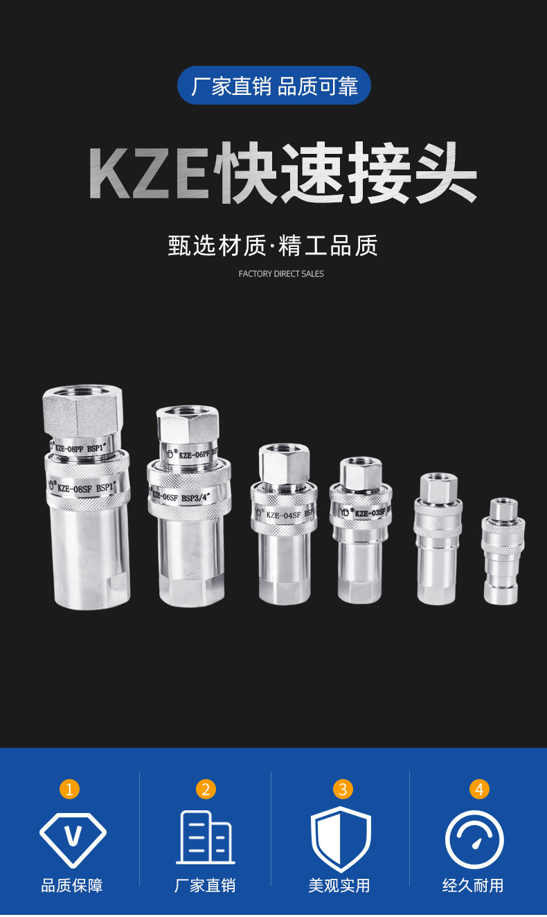 炭素鋼クイックジョイント開閉式ワンタッチジョイント油圧オイルチューブkze油圧クイックジョイントめねじ