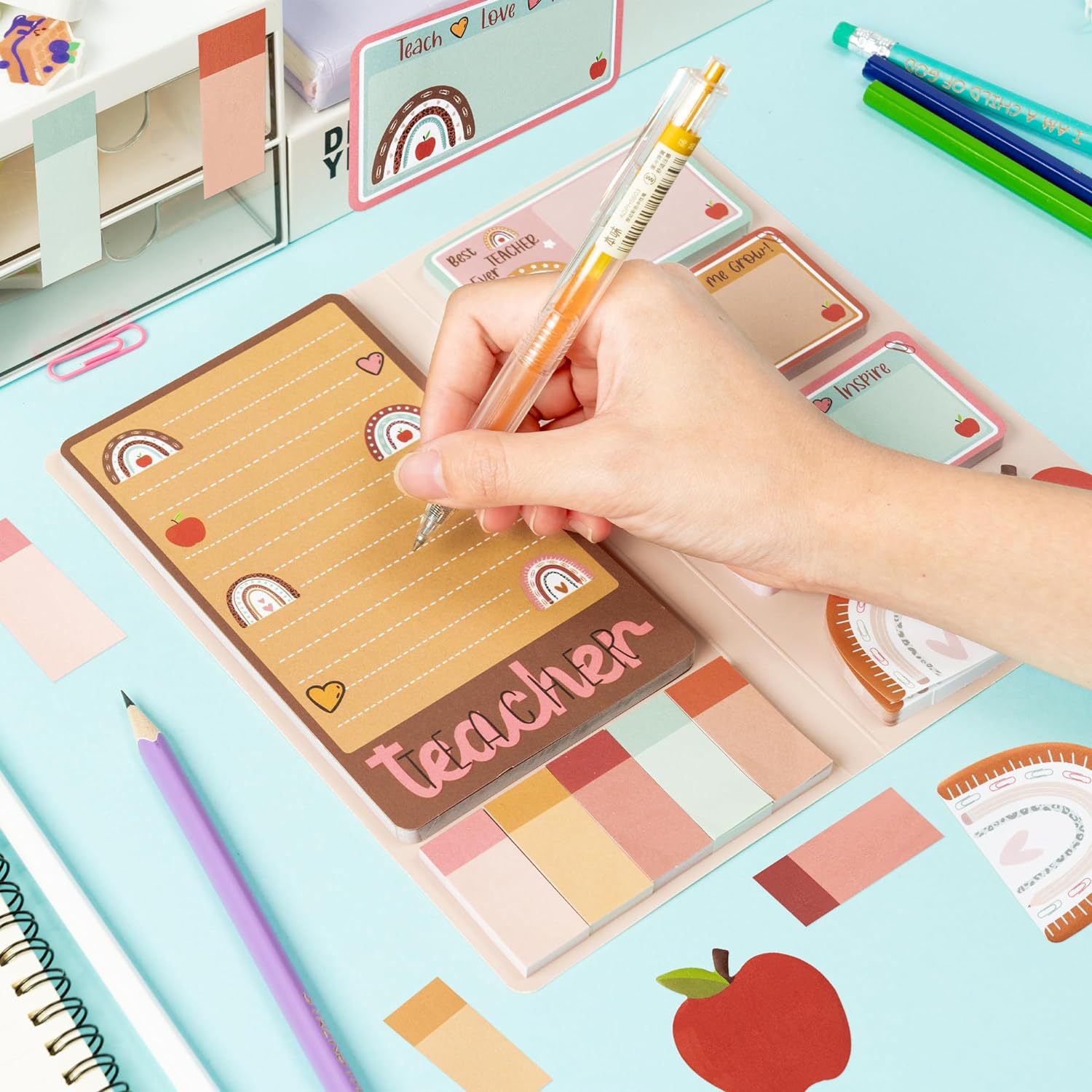 国境を越えた売れ筋教師の日組み合わせ付箋セット特殊な形の付箋コイル漫画は引き裂いて貼り付けることができます