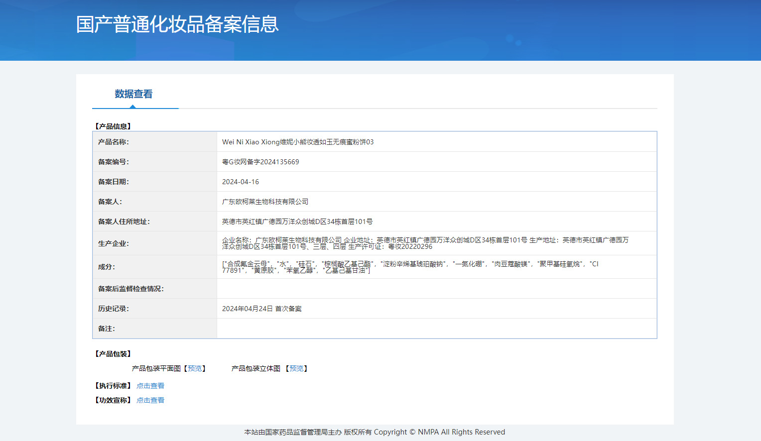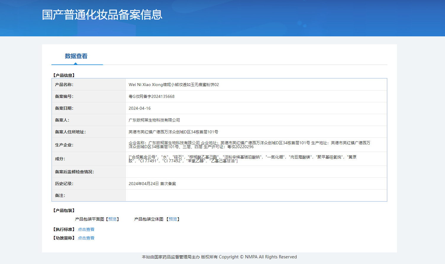 非特定化粧品届出証番号 広東G化粧網予備字2023135669