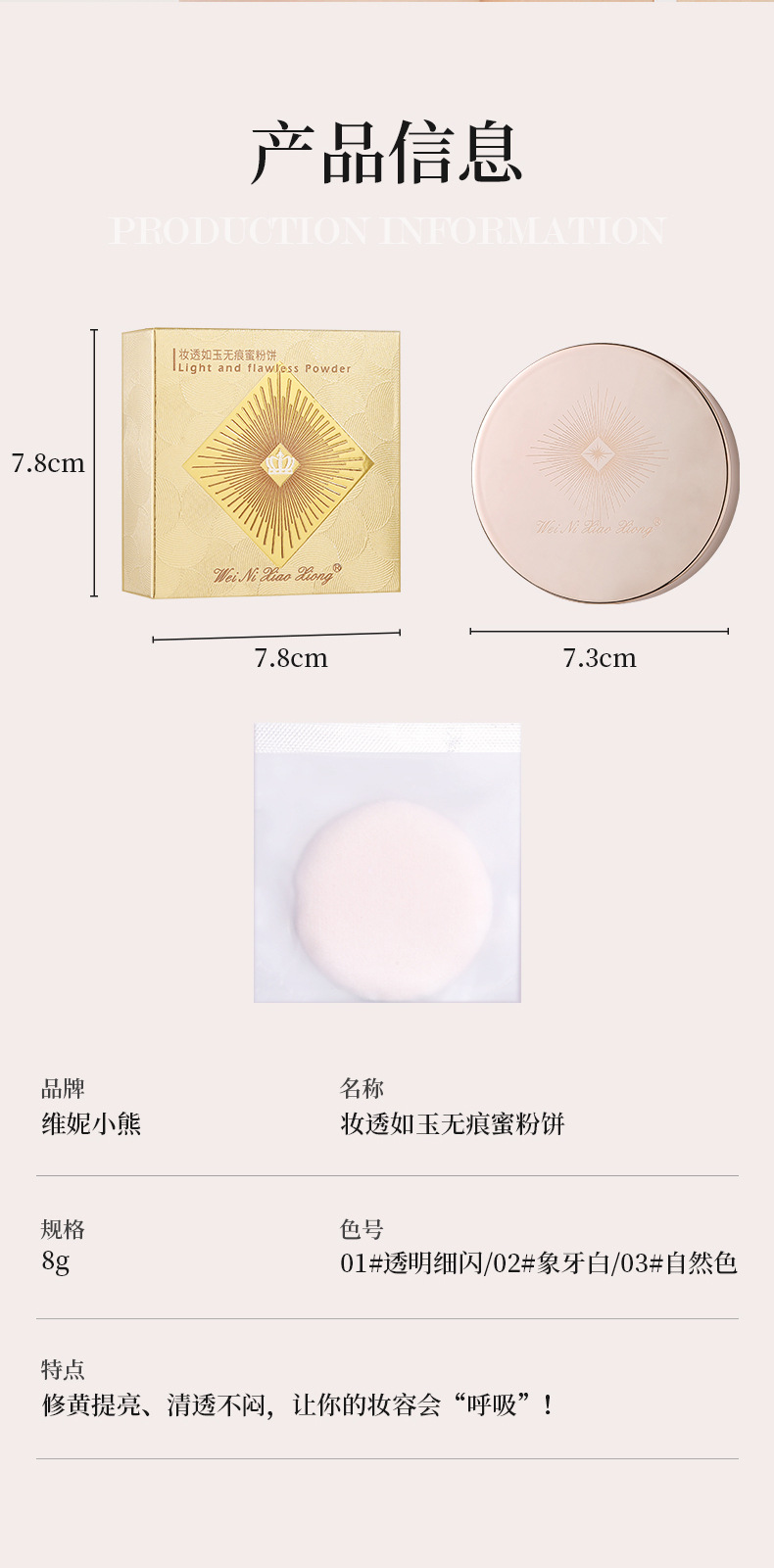 厂家直供维妮小熊花荣月貌轻羽细腻定妆撒粉快手抖音小红外贸专供
