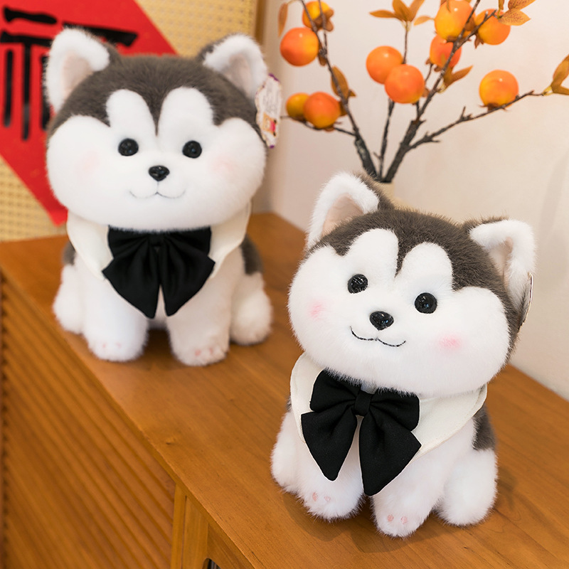 可爱泡芙犬毛绒玩具大领结哈士奇儿童安抚仿真狗抓娃娃机跨境批发