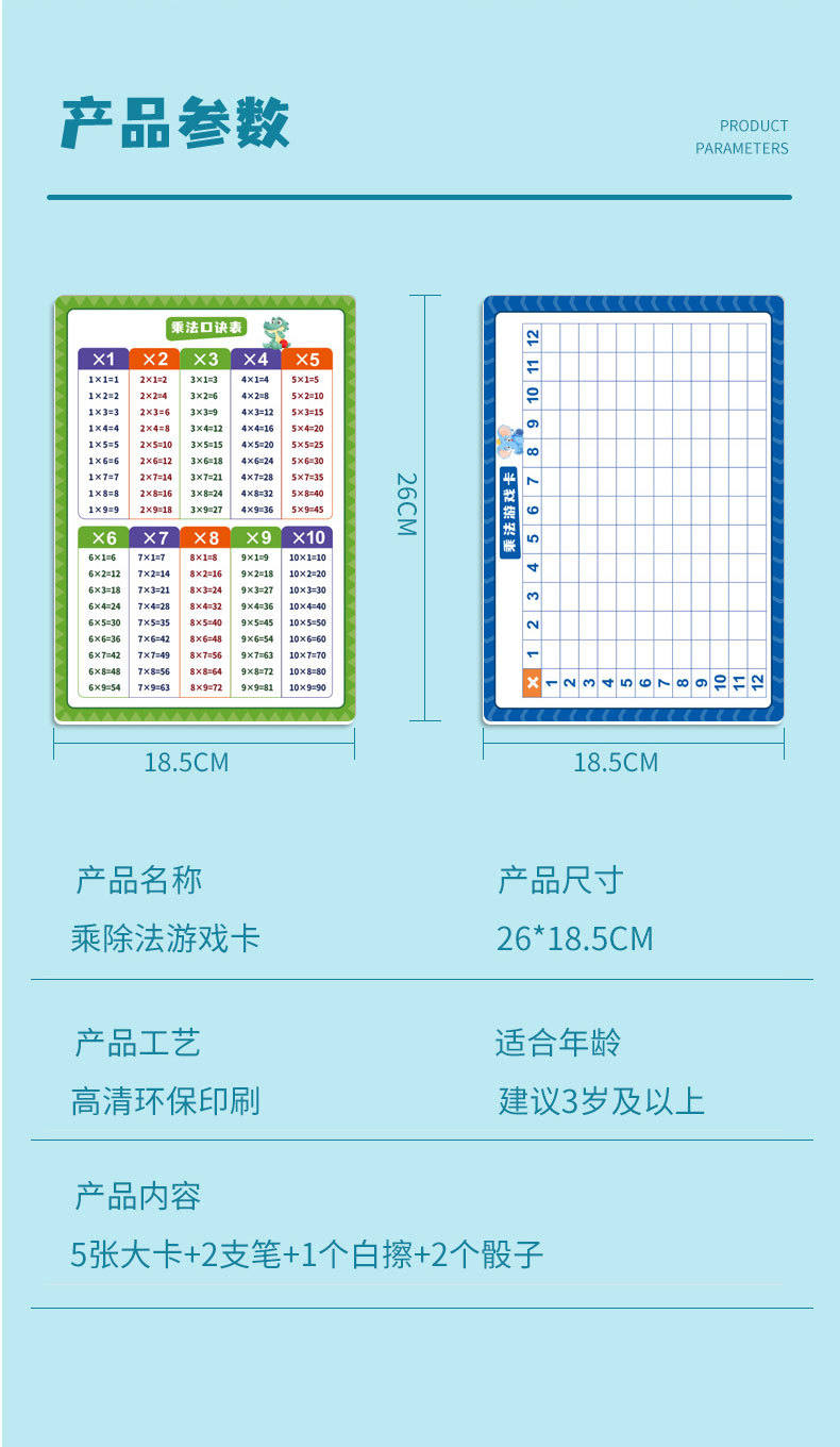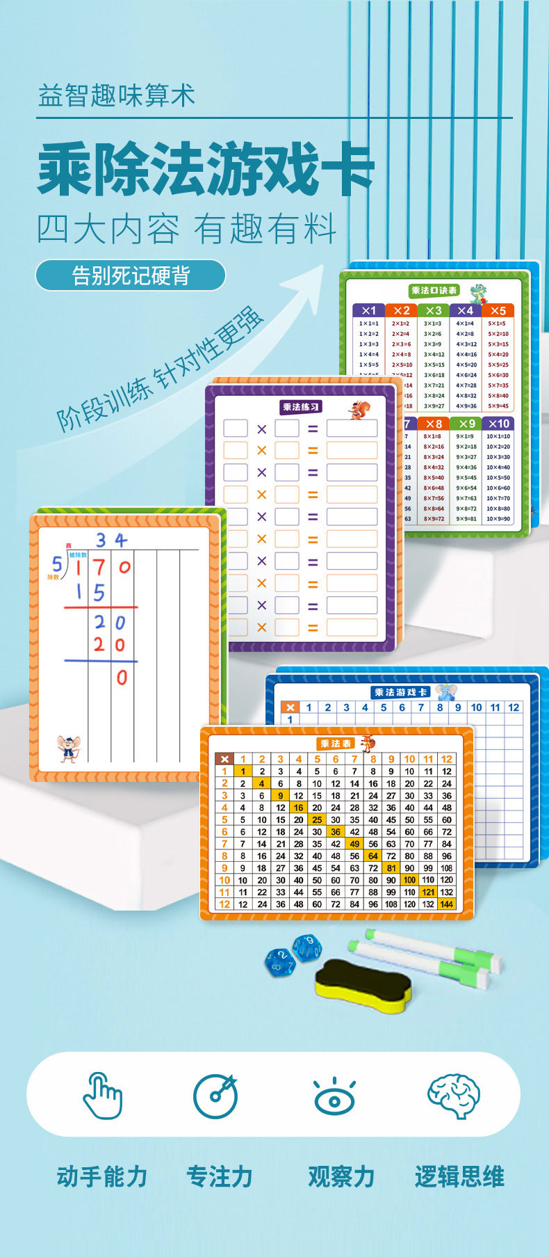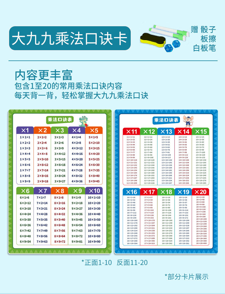 小学生99掛け算表カード益智学習表乗算法表カード数学割り算学習