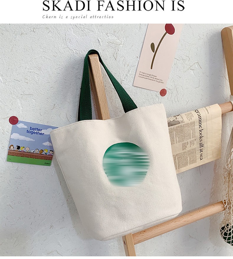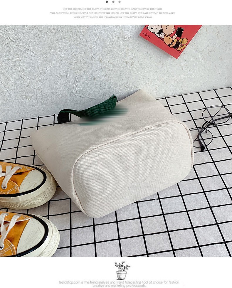 卸売りの女性カバンのプリントの漫画のハンドバッグのバケツのキャンバスの布はファッションの潮の弁当の小さい方のカバンのお母さんの手を持って小包を持ちます。