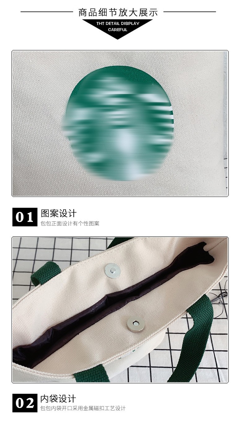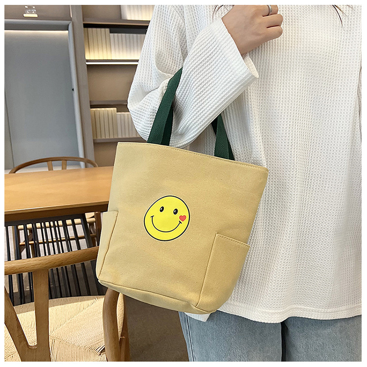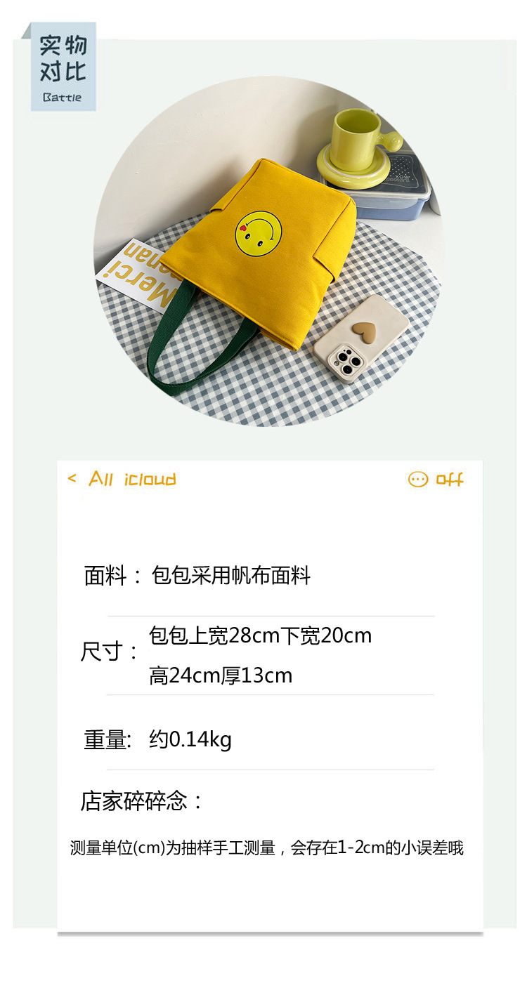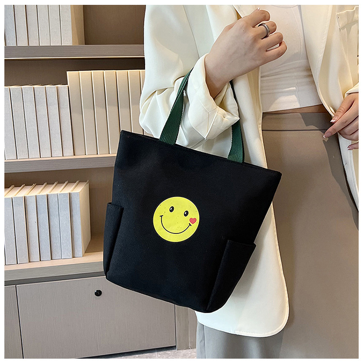 ジッパーキャンバス手提げ袋耐久性バッグ出勤工事現場キャンバスバッグサラリーマンシンプルサラリーマンアルファベット笑顔