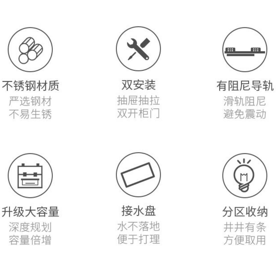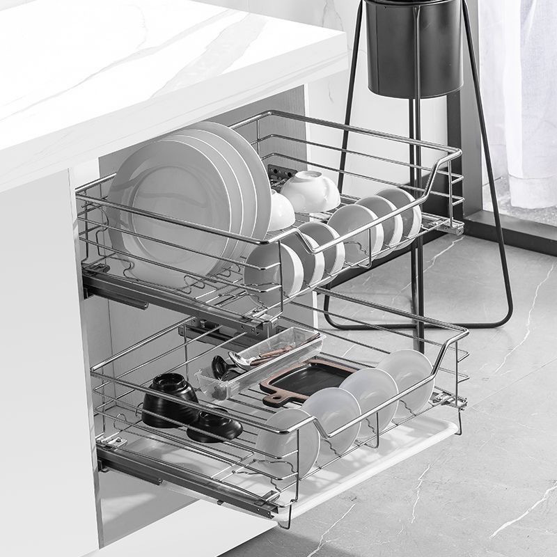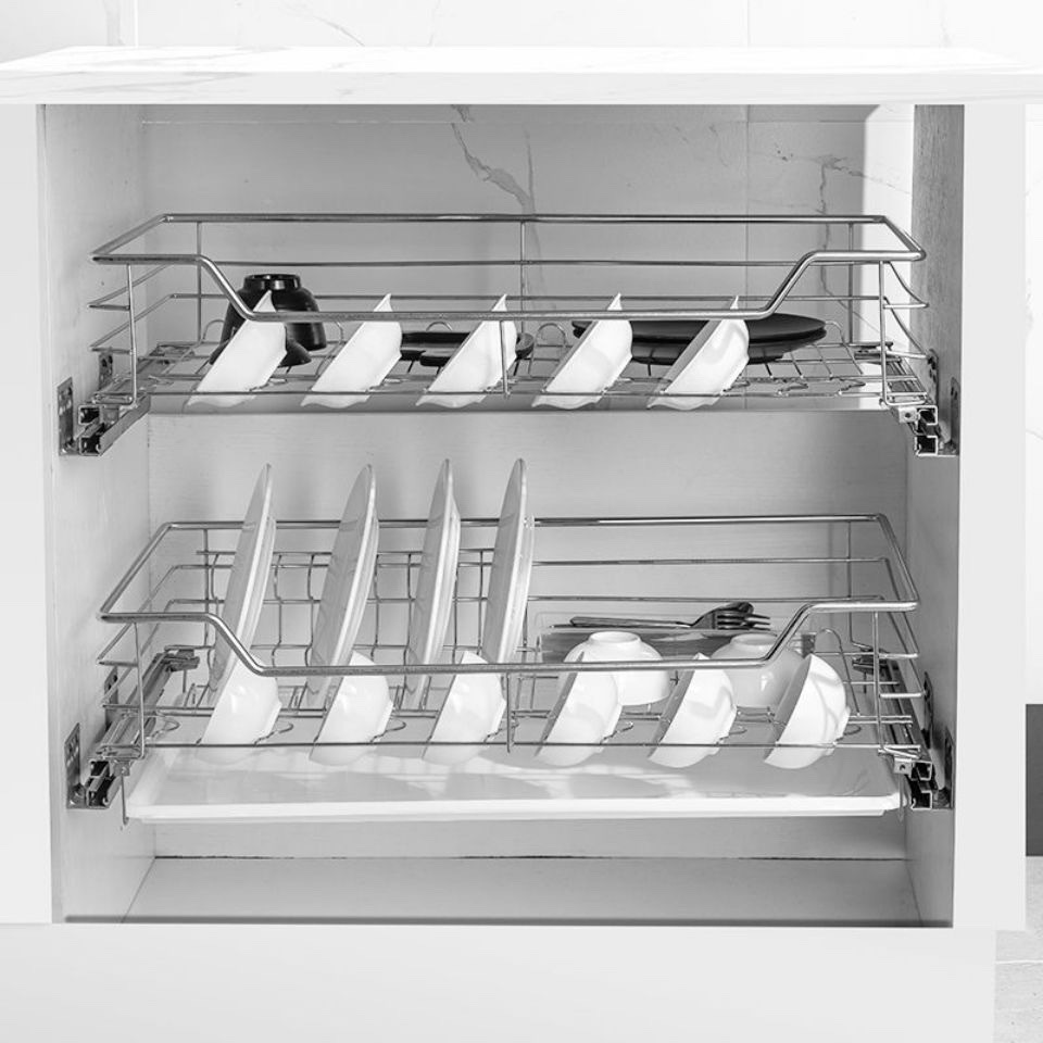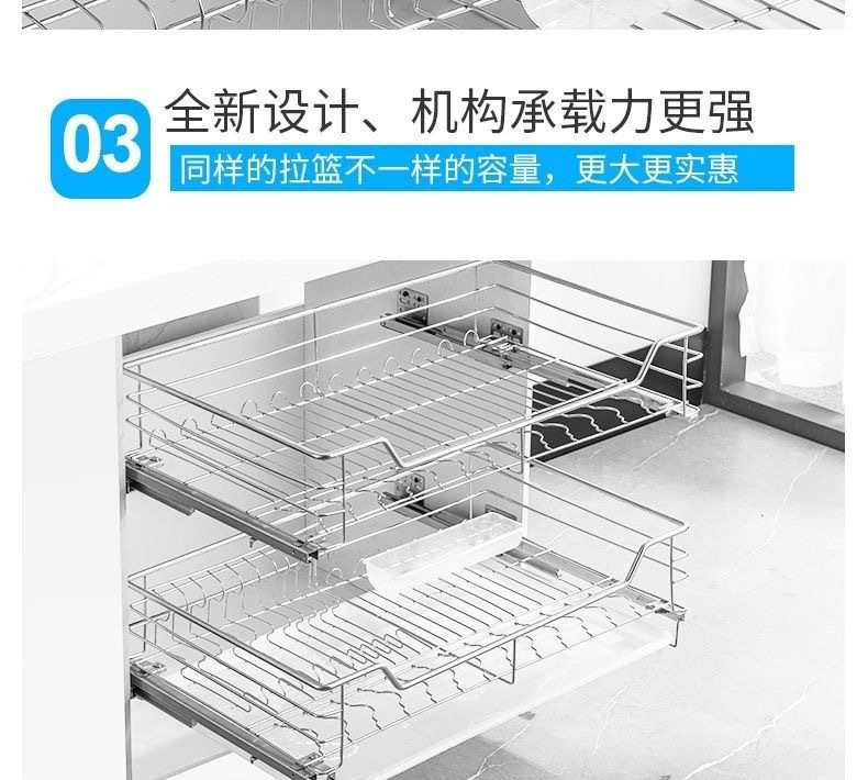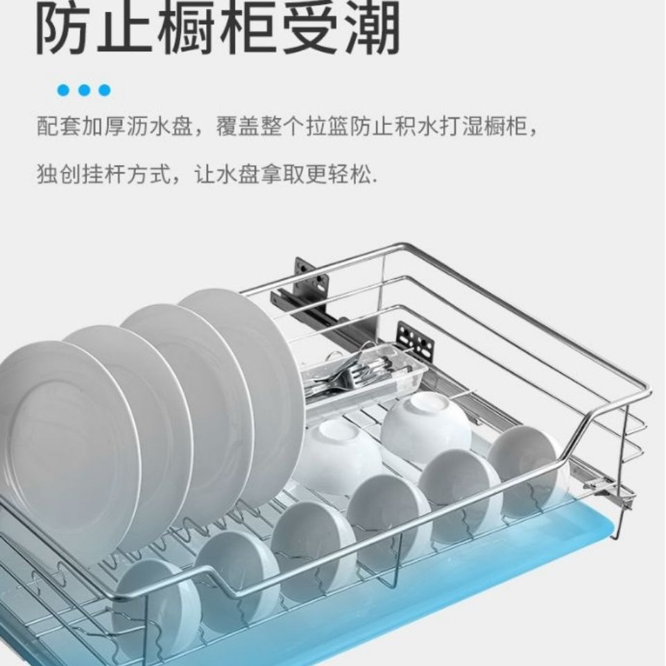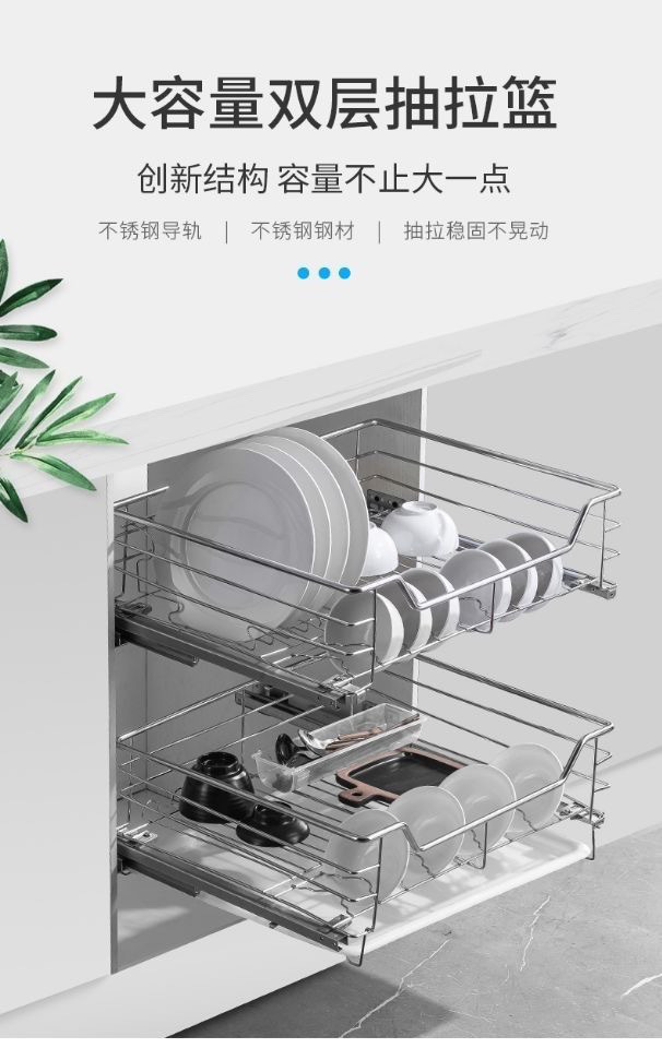 台所戸棚ステンレス二重引き出し式食器棚収納緩衝調内蔵バスケット