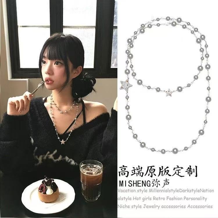 潮クール復古暗黒クロスビーズチェーンネックレス小衆長型亜文化ギャルビーズ高級感セーターチェーン