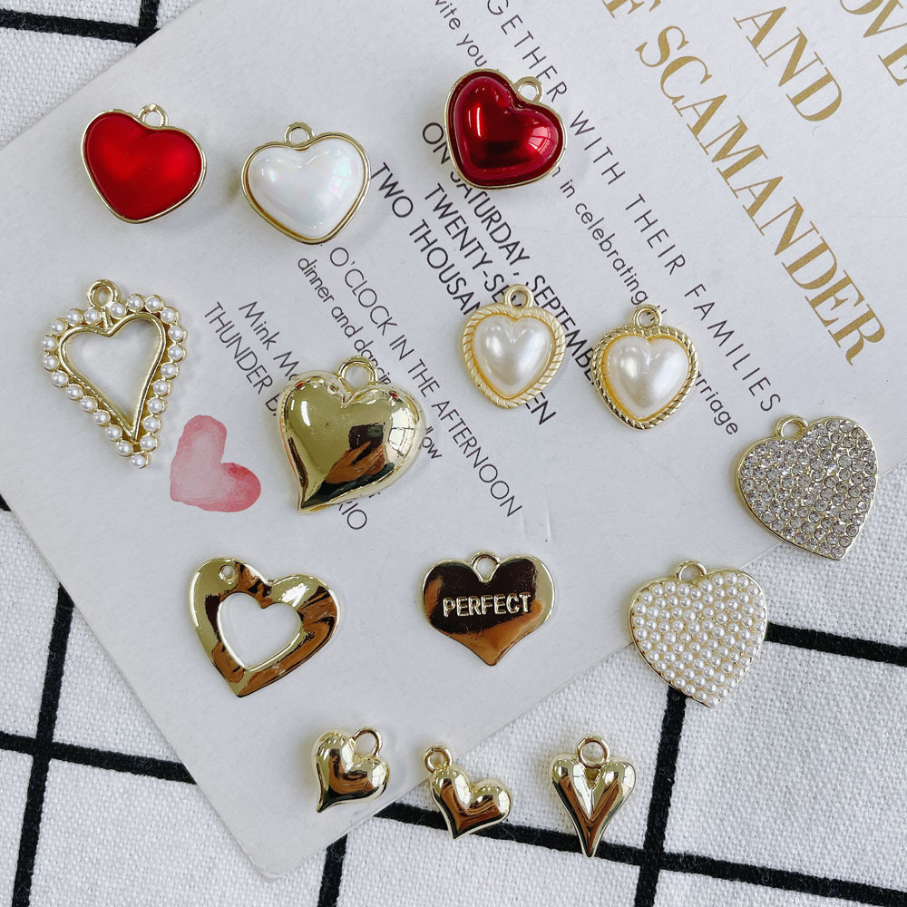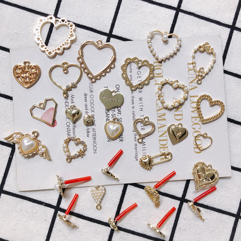 Diyアクセサリーの部品の卸売りの愛の桃の心は小さい真珠のペンダントの合金のイヤリングのイヤリングの基礎の部品を象眼します。