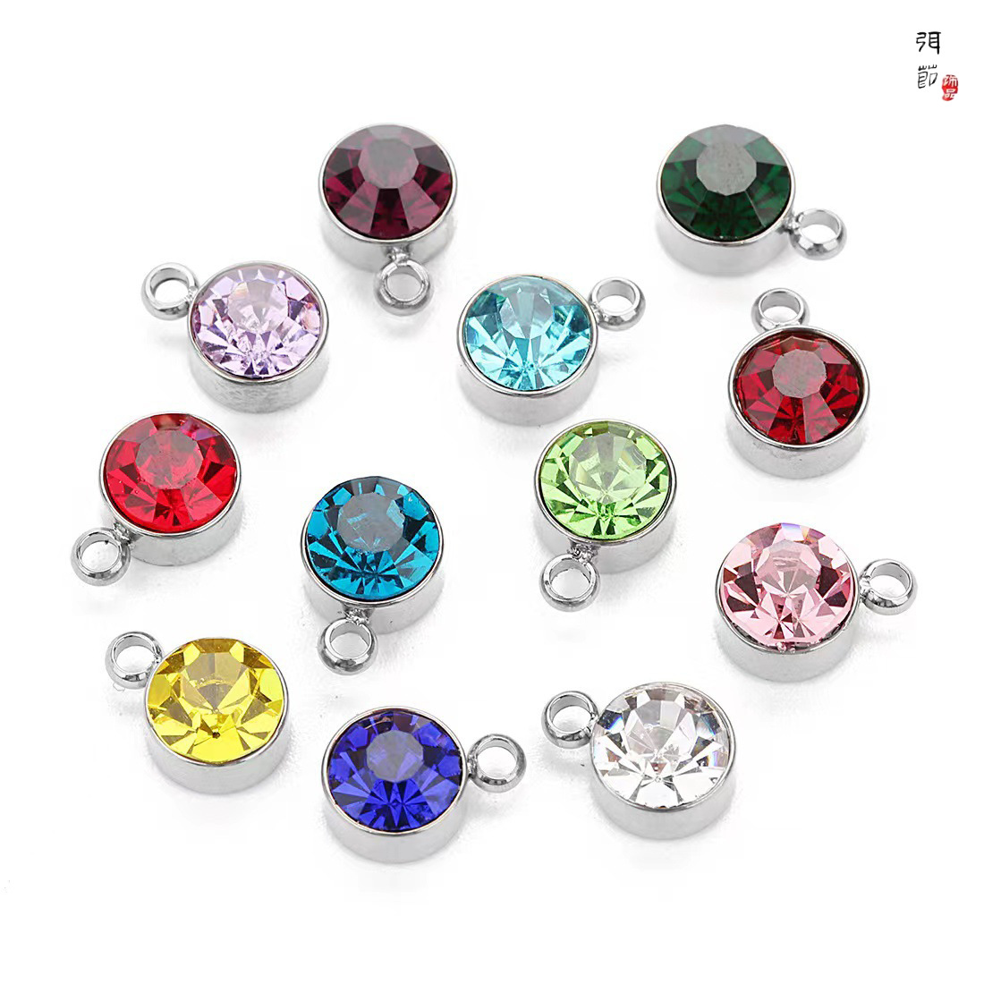 diy饰品配件 跨境热销6MM合金镶钻十二生辰石小吊坠星辰石幸运石
