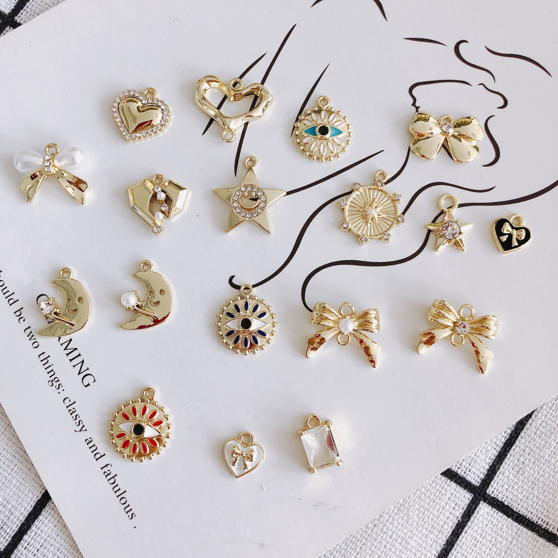Diyアクセサリーアクセサリー卸売り復古悪魔の目蝶ネクタイ月桃心耳飾りネックレス材料アクセサリー