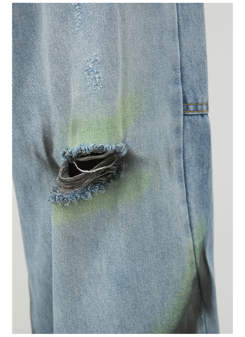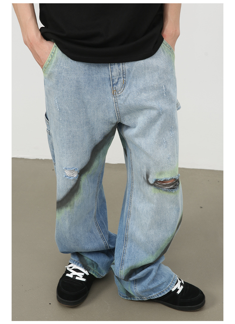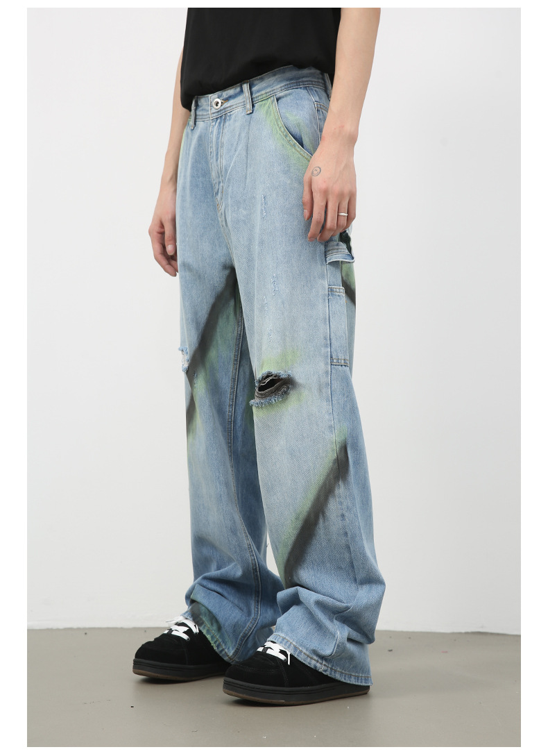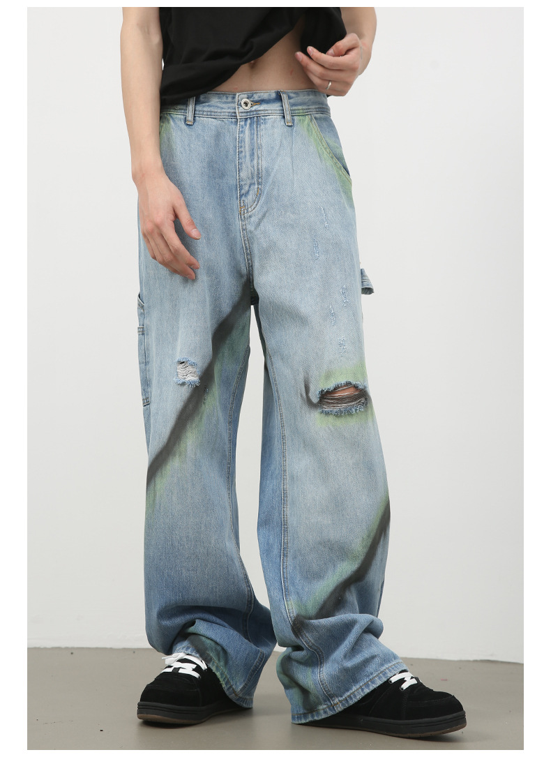 Nirbenカウボーイ | 衝突色手描き広脚ジーンズ男潮牌新商品街頭ゆるい直筒破洞長ズボン