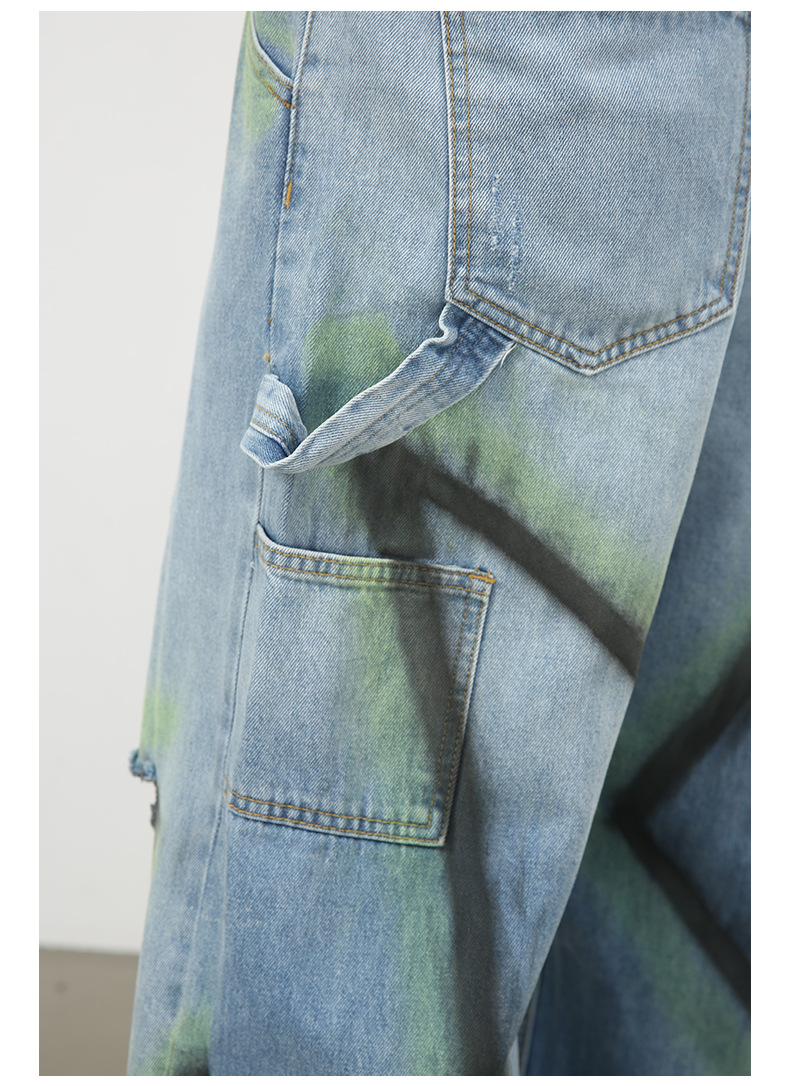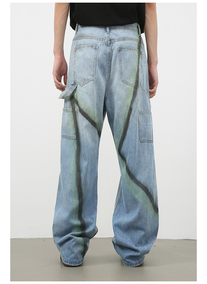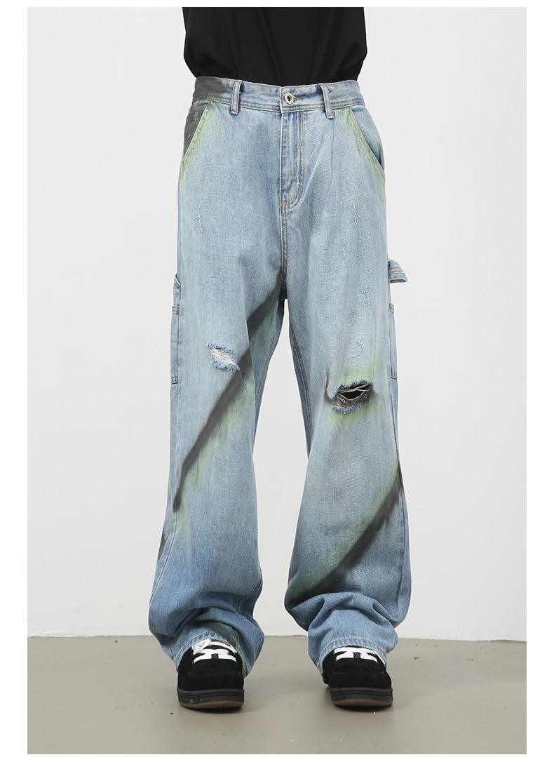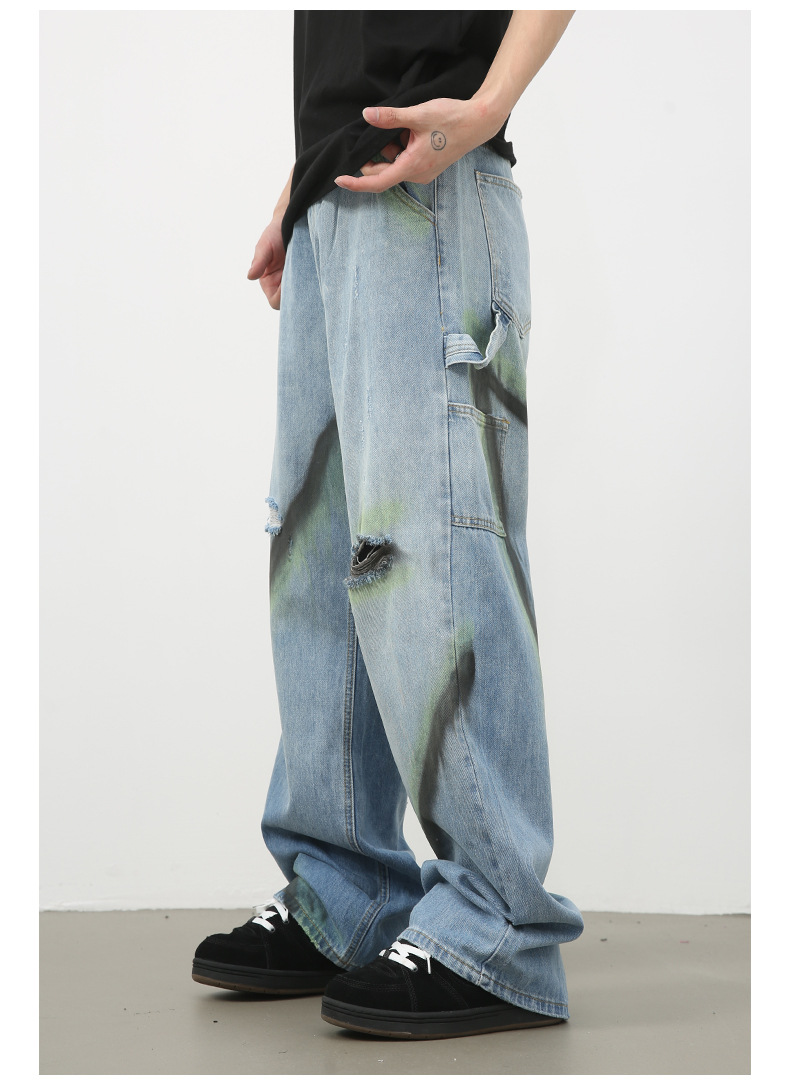 Nirbenカウボーイ | 衝突色手描き広脚ジーンズ男潮牌新商品街頭ゆるい直筒破洞長ズボン