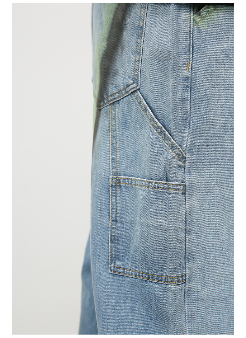 Nirbenデニム | アメリカのレトロな工装ズボン男性ジーンズの高い街のゆるいストレートデザイン感のあるワイドパンツ