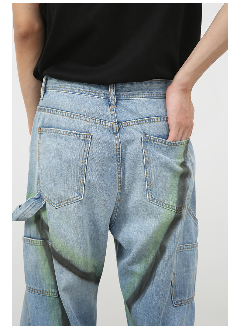 Nirbenカウボーイ | アメリカのレトロな多ポケット水洗いジーンズ男高街ゆるい直筒工装ズボン