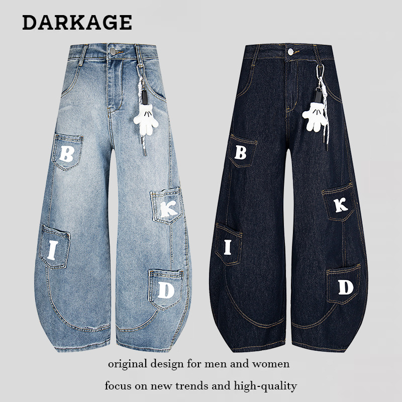 2025新型アメリカデザインのカーブナイフにジーパンの男性のアルファベットのアメリカの小さい大衆の垂れ下がっている感じがします。