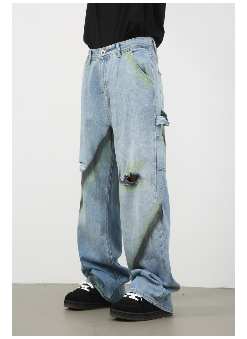 Nirbenカウボーイ | 街のレトロな木こりジーンズ男性アメリカの潮牌高街破洞ゆるいストレートパンツ