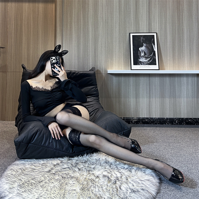 セクシーでやせている長い筒のレースのストッキングの薄いタイプの高弾の黒い糸の夜店のトランポリンの純粋な欲の太もものストッキング