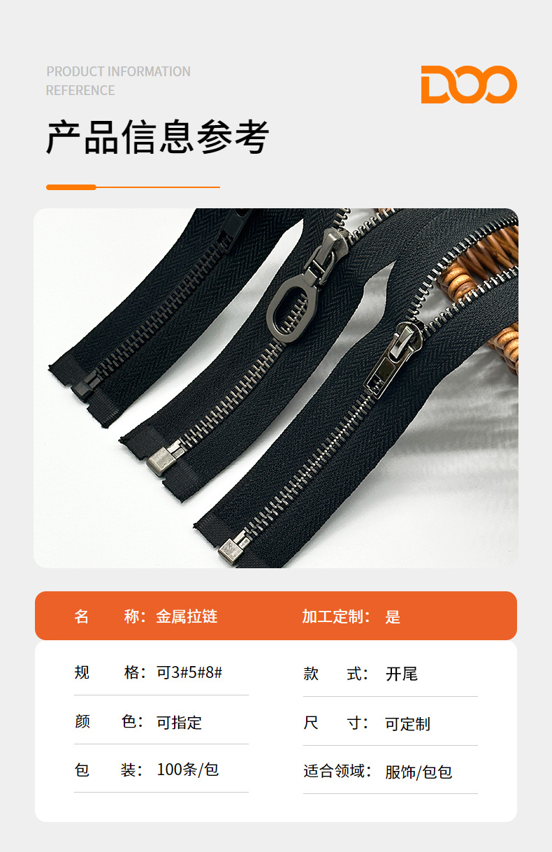 工場直販卸売 0号 黒白 メタルドロップヘッドジッパー 人形服、バッグ、ペット服に適用