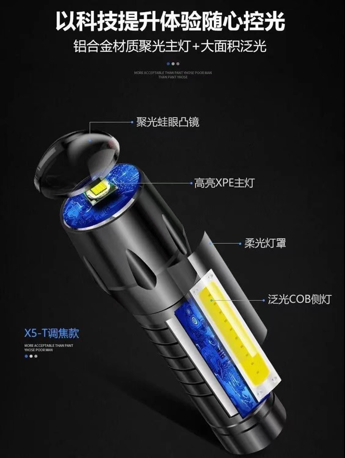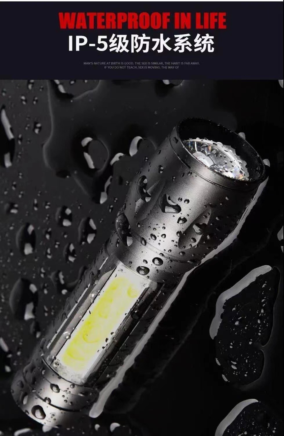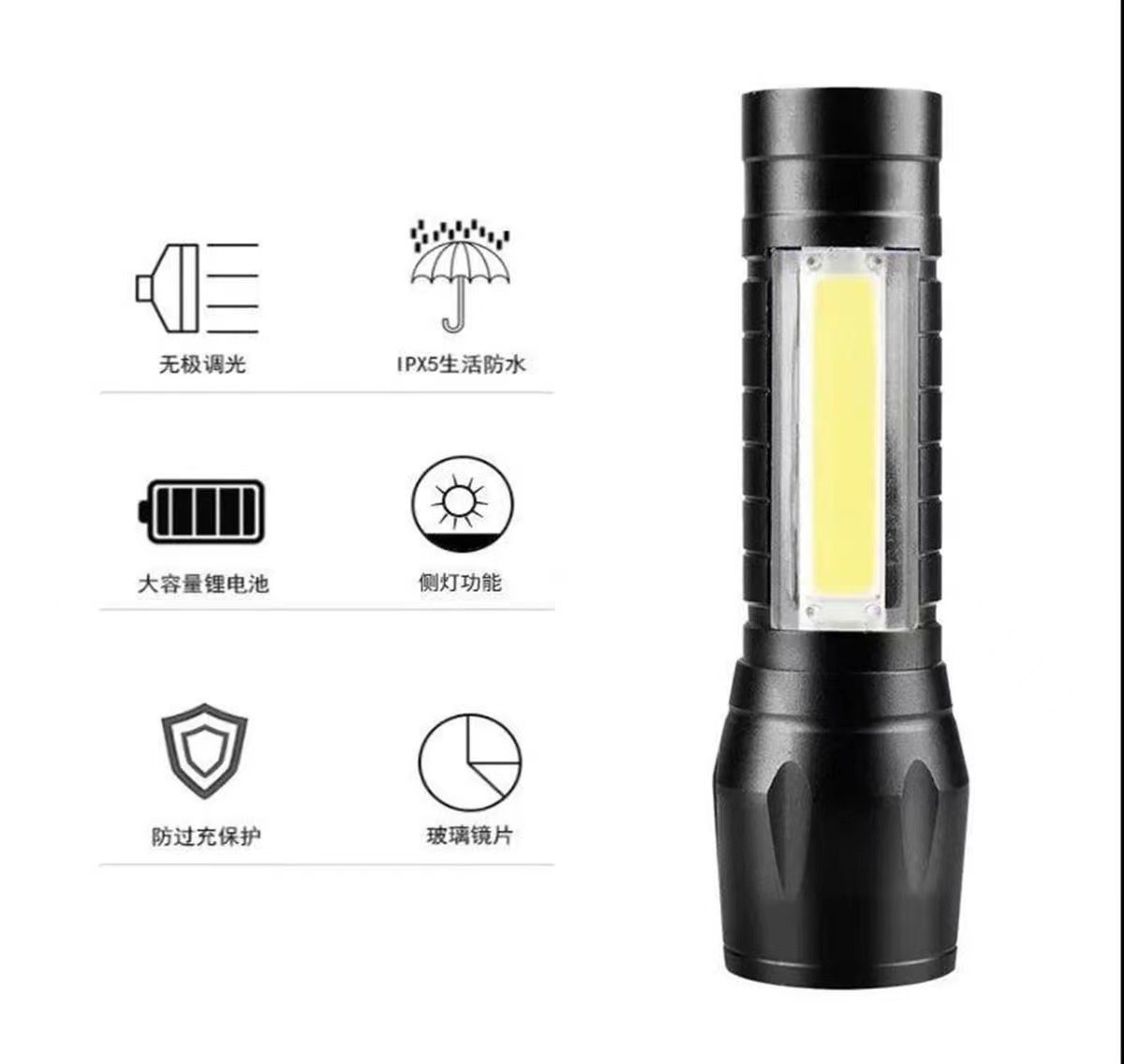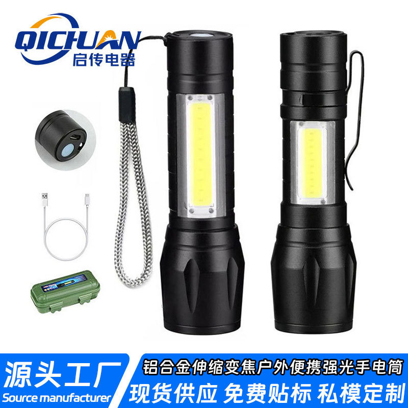 クロスボーダー強力な光ミニ懐中電灯cobサイドライト家庭用ポータブルズーム小型懐中電灯屋外充電式led懐中電灯