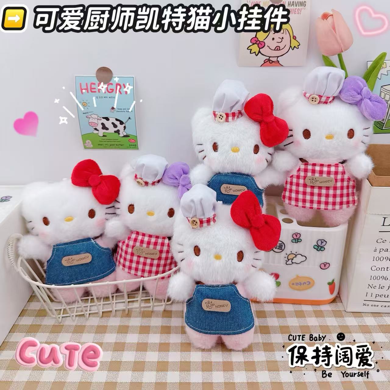 厨师凯特猫钥匙扣挂件毛绒公仔玩偶少女心厨师凯特猫挂件书包挂饰