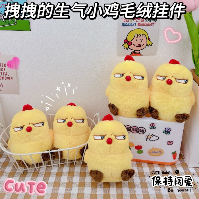 かわいいひよこを引っ張って怒っているひよこのキーホルダーのアイデアの小さい黄色のニワトリのぬいぐるみのカップルのかばんは卸売りを飾ります。