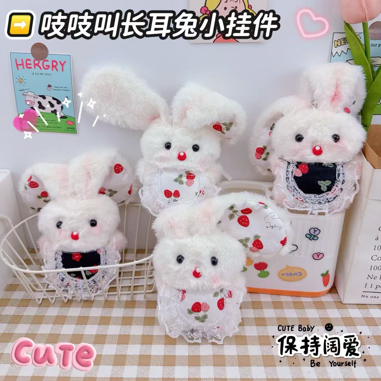 可爱吱吱叫围兜小兔子钥匙扣挂件创意甜心长耳小兔挂件书包小挂饰
