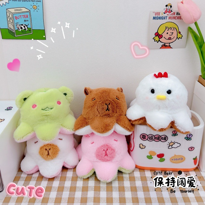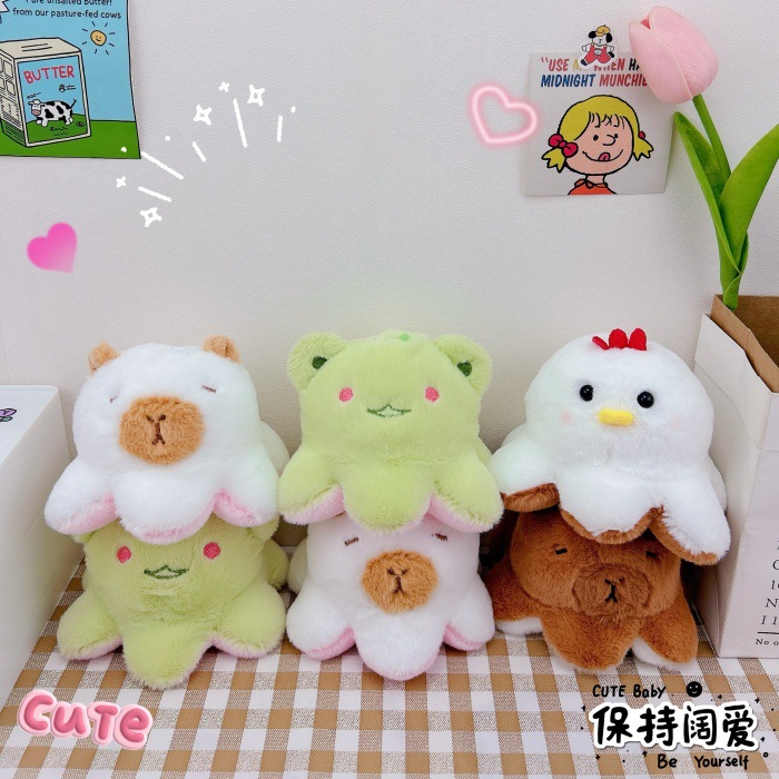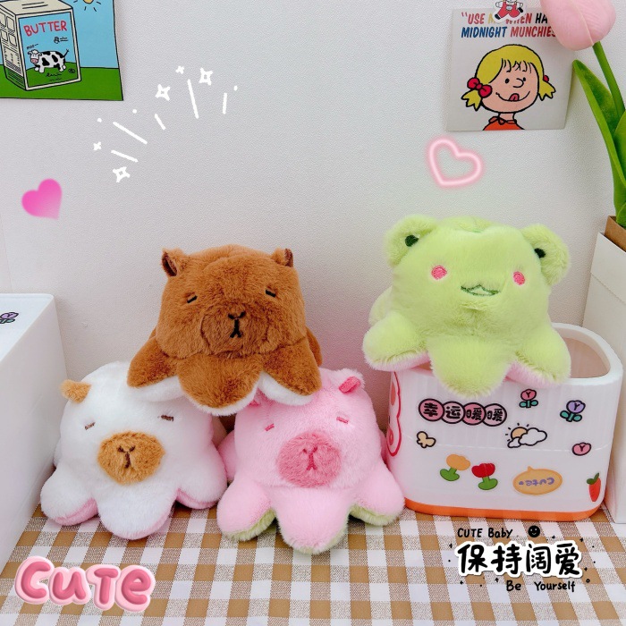 カピバラのタコの両面の人形のキーホルダーの女性の本の包みのペンダントのかわいいカピバラのぬいぐるみのぬいぐるみの包みのペンダント