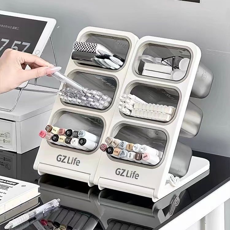 斜め置き式三格ペン立て多機能口紅収納子供文房具収納展示棚亜格力置物棚