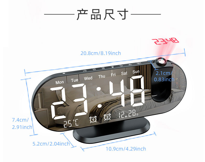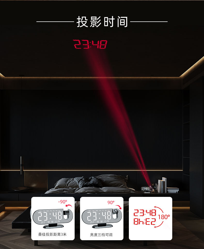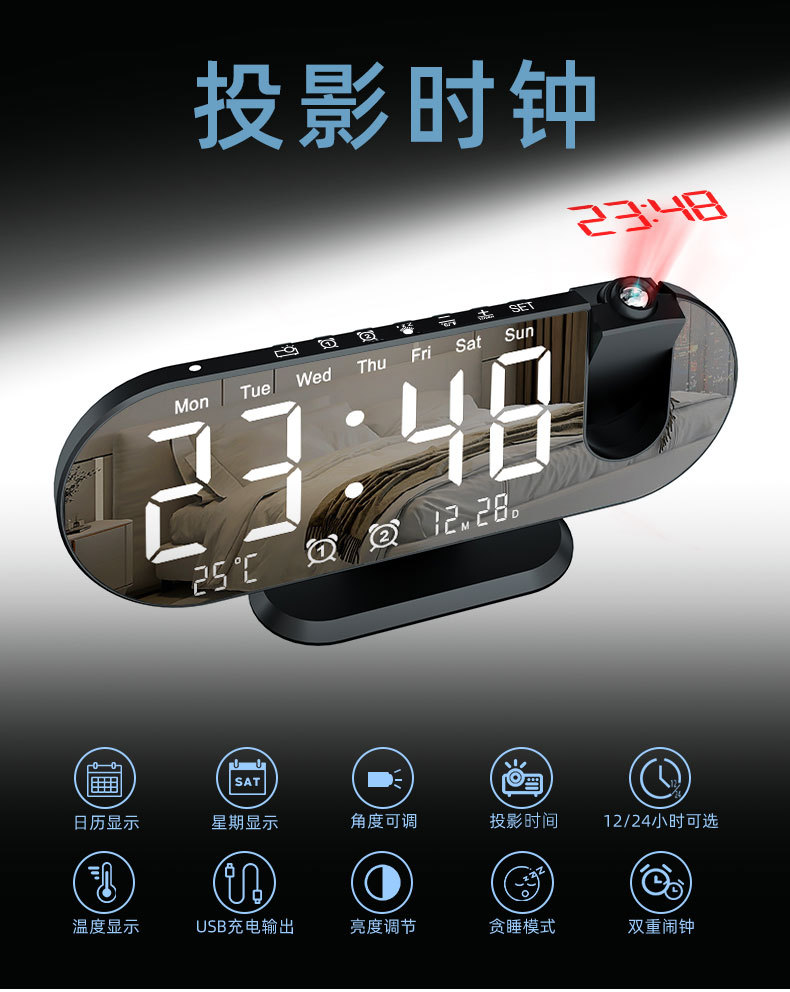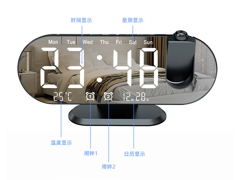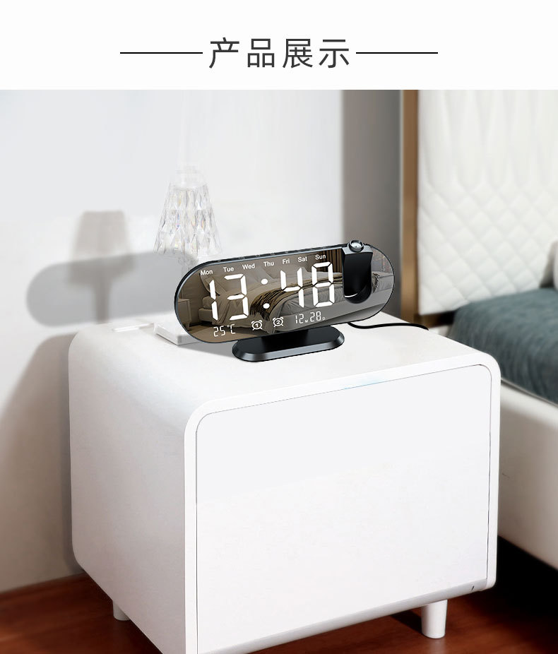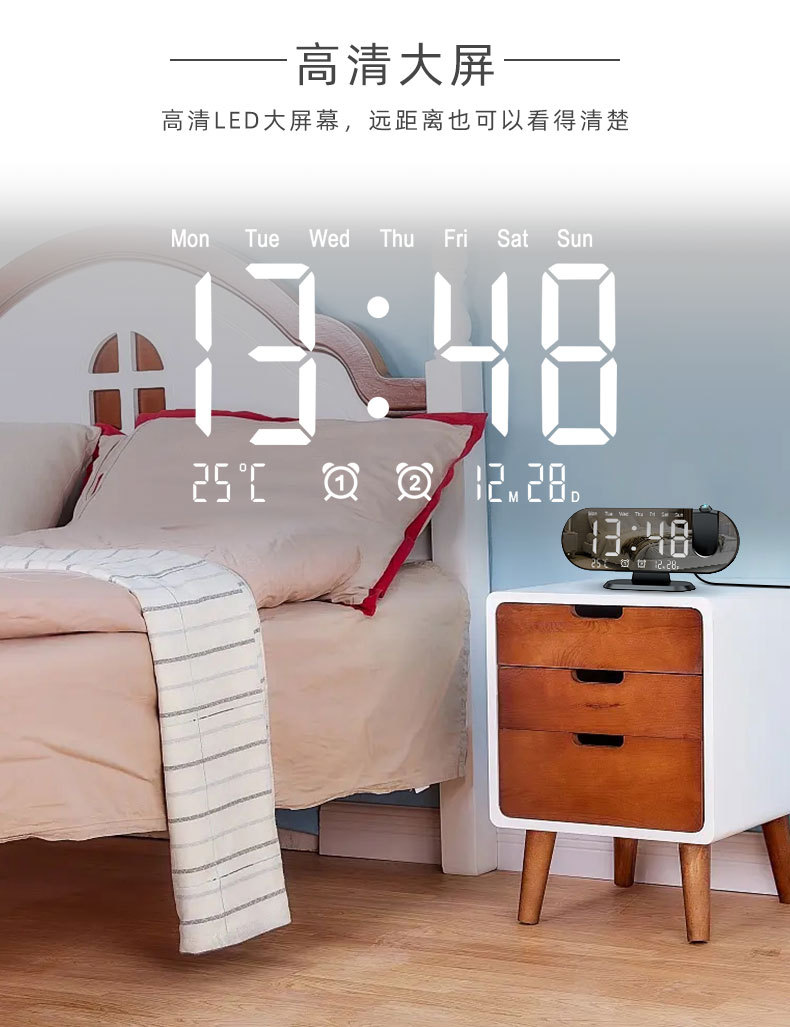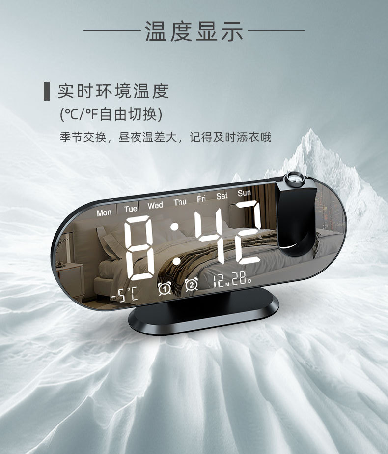 源メーカークロスボーダー投影目覚まし時計led大画面表示温度計電子時計学生デスクトップ振り子