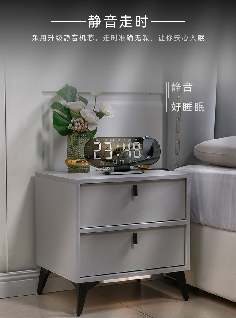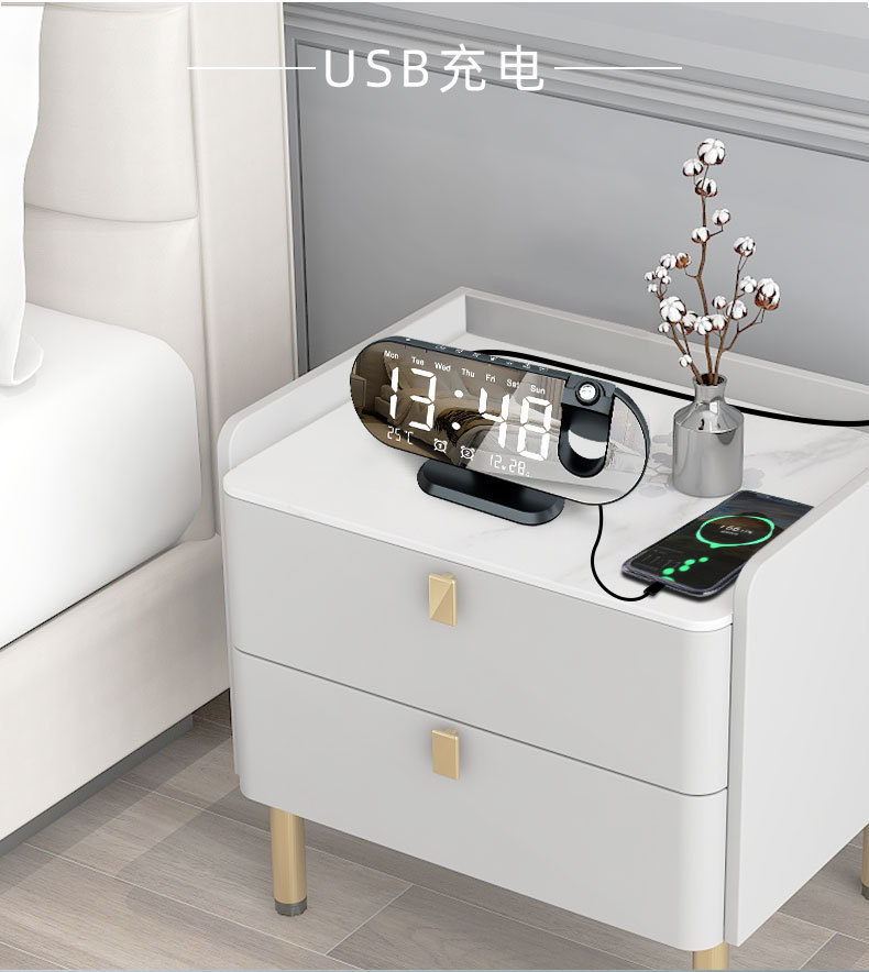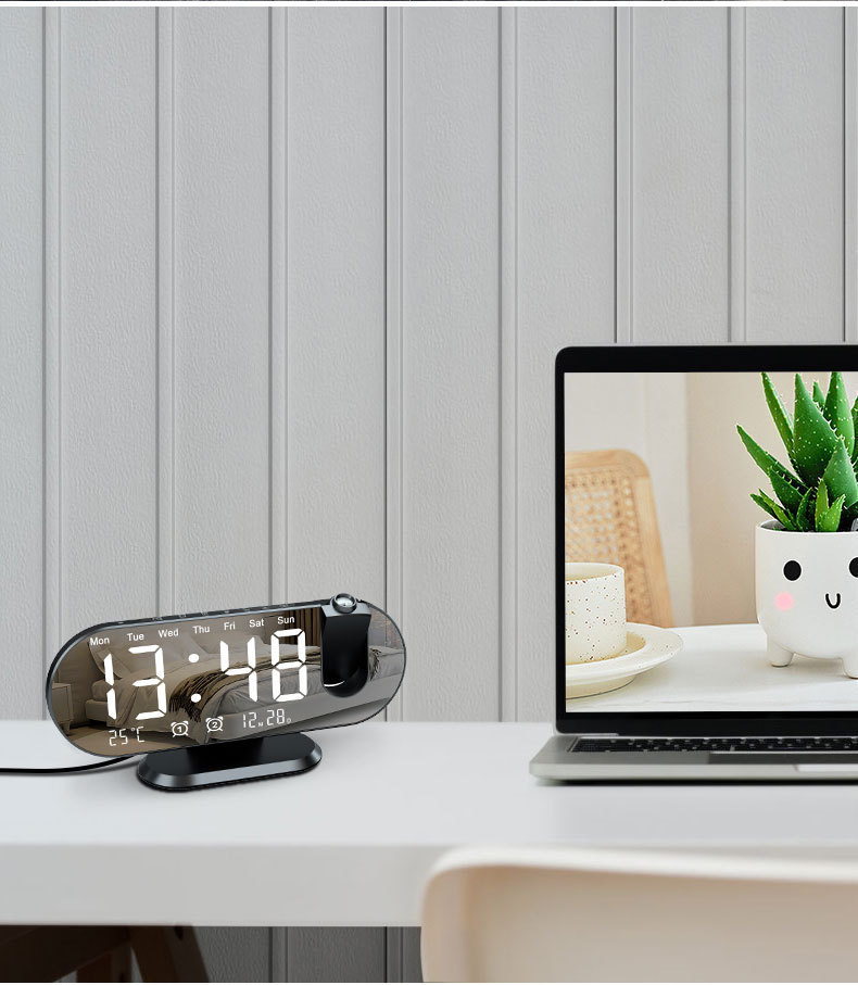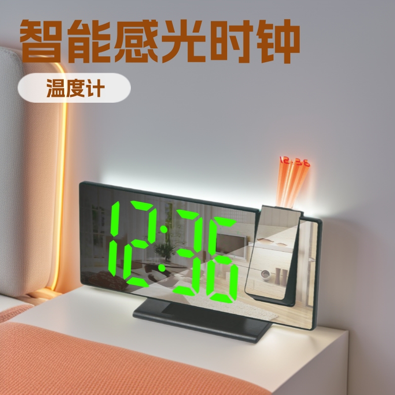 クロスボーダー学生電子時計インターネット有名人 LED 大画面ミラースマート目覚まし時計発光温度と湿度投影小型目覚まし時計