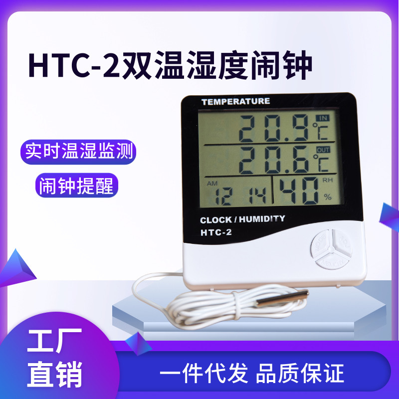 メーカー直販対外貿易クロスボーダー大画面表示温湿度目覚まし時計室内大画面電子温度計HTC-2